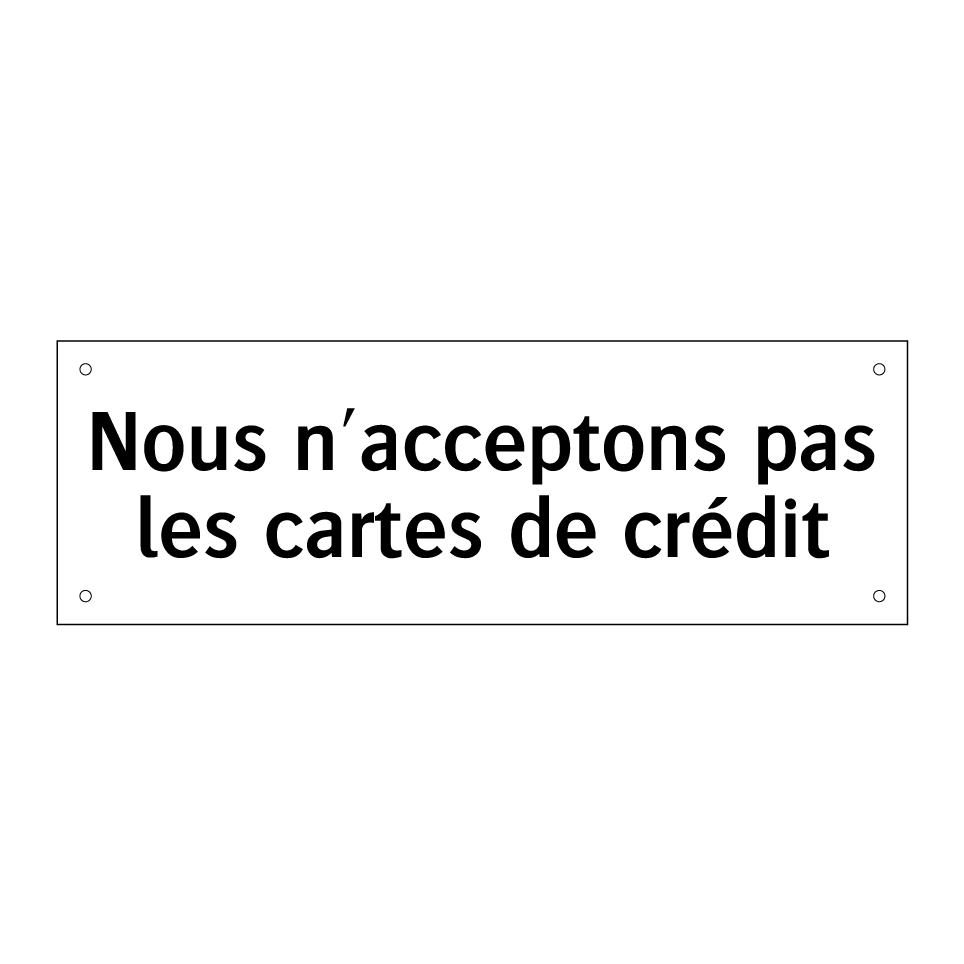 Panneau d'interdiction avec le texte : "Nous n'acceptons pas les cartes de crédit"