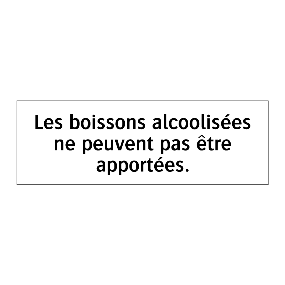 Panneau d'interdiction avec le texte : "Les boissons alcoolisées ne peuvent pas être apportées."