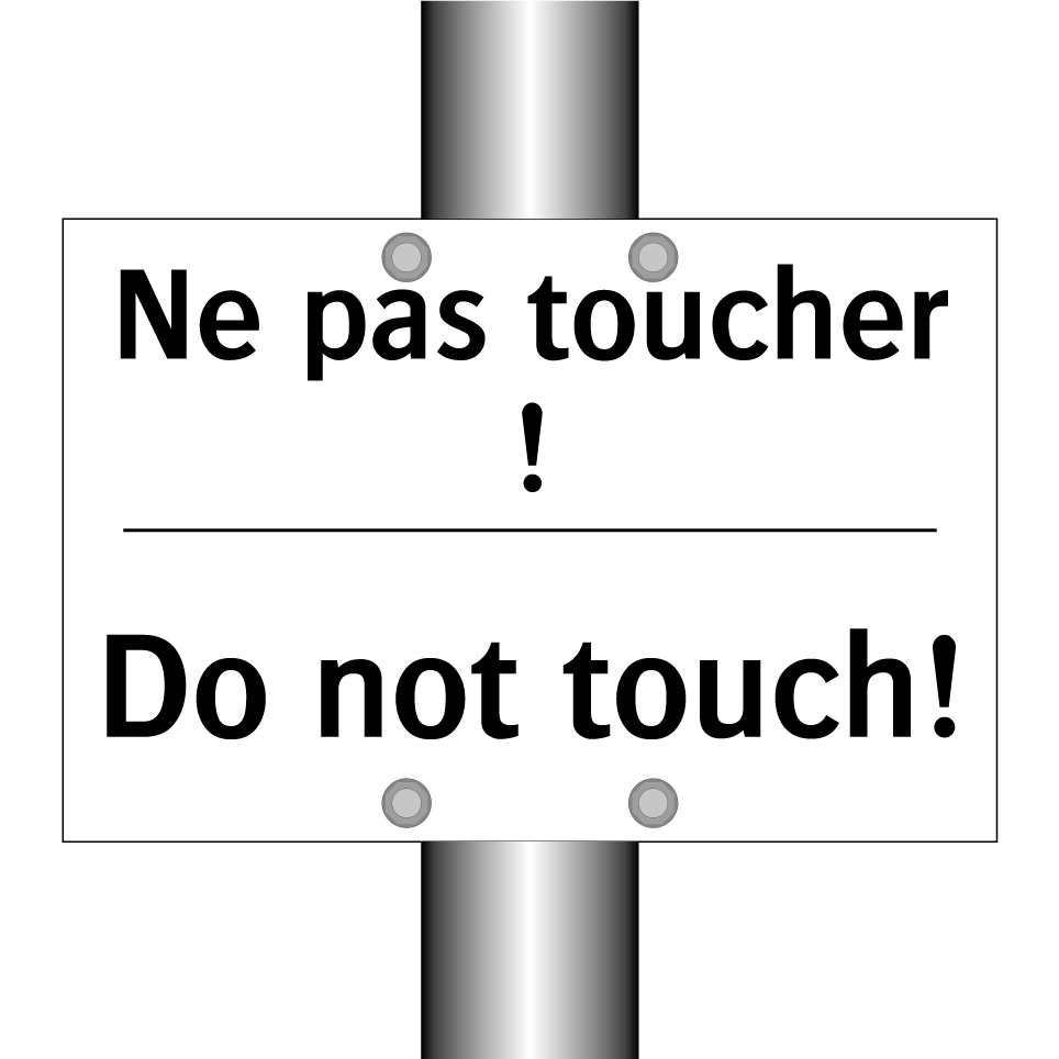 Panneau d'interdiction bilingue avec texte en français : "Ne pas toucher !", et en anglais : "Do not touch!"