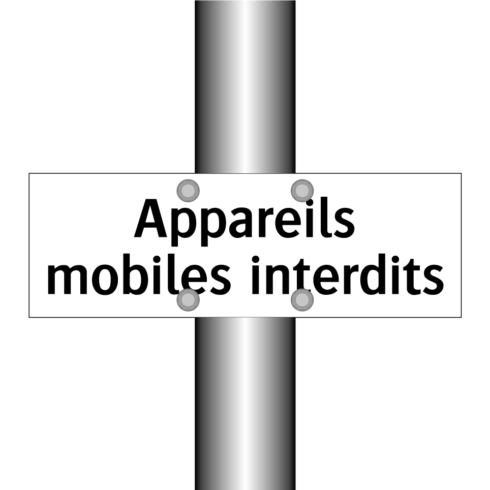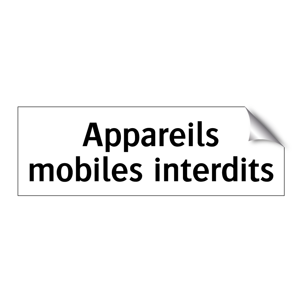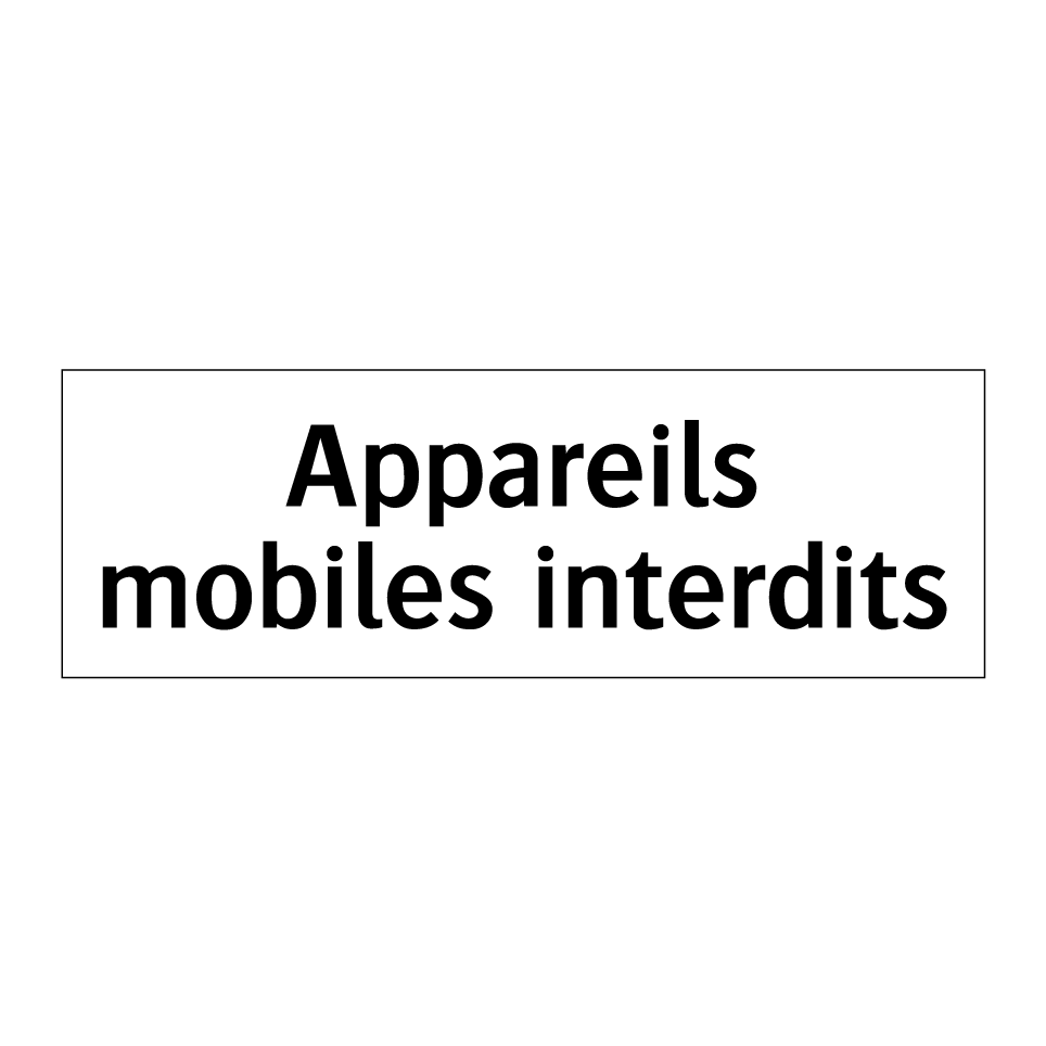 Panneau d'interdiction avec le texte : "Appareils mobiles interdits"