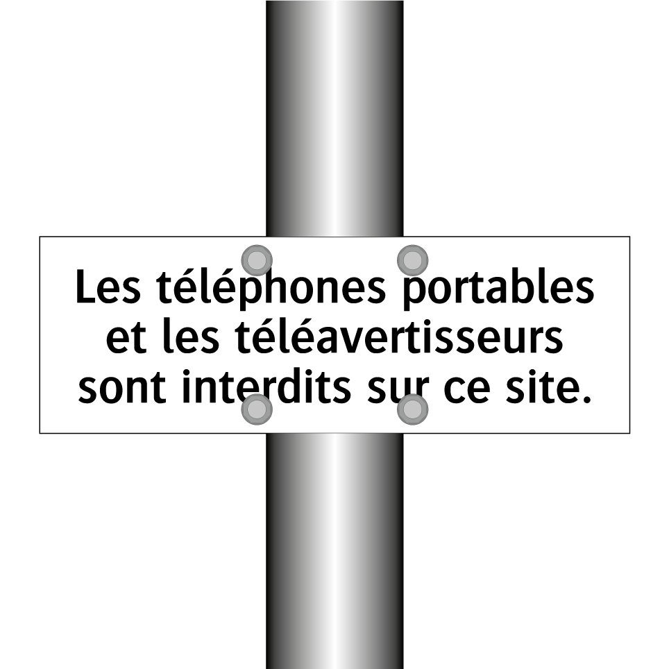 Panneau d'interdiction avec le texte : "Les téléphones portables et les téléavertisseurs sont interdits sur ce site."