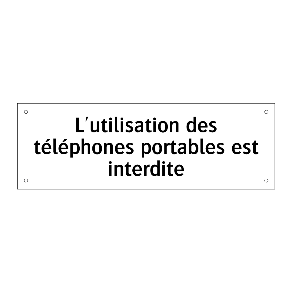 Panneau d'interdiction avec le texte : "L'utilisation des téléphones portables est interdite"