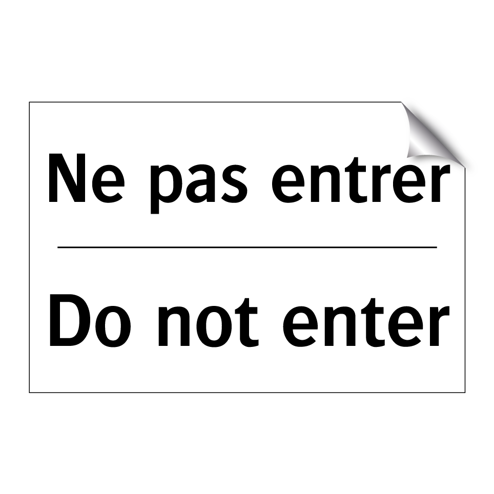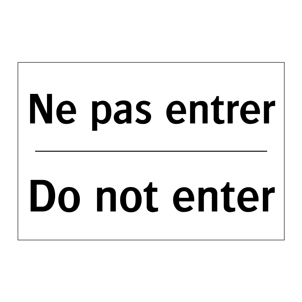 Panneau d'interdiction bilingue avec texte en français : "Ne pas entrer", et en anglais : "Do not enter"