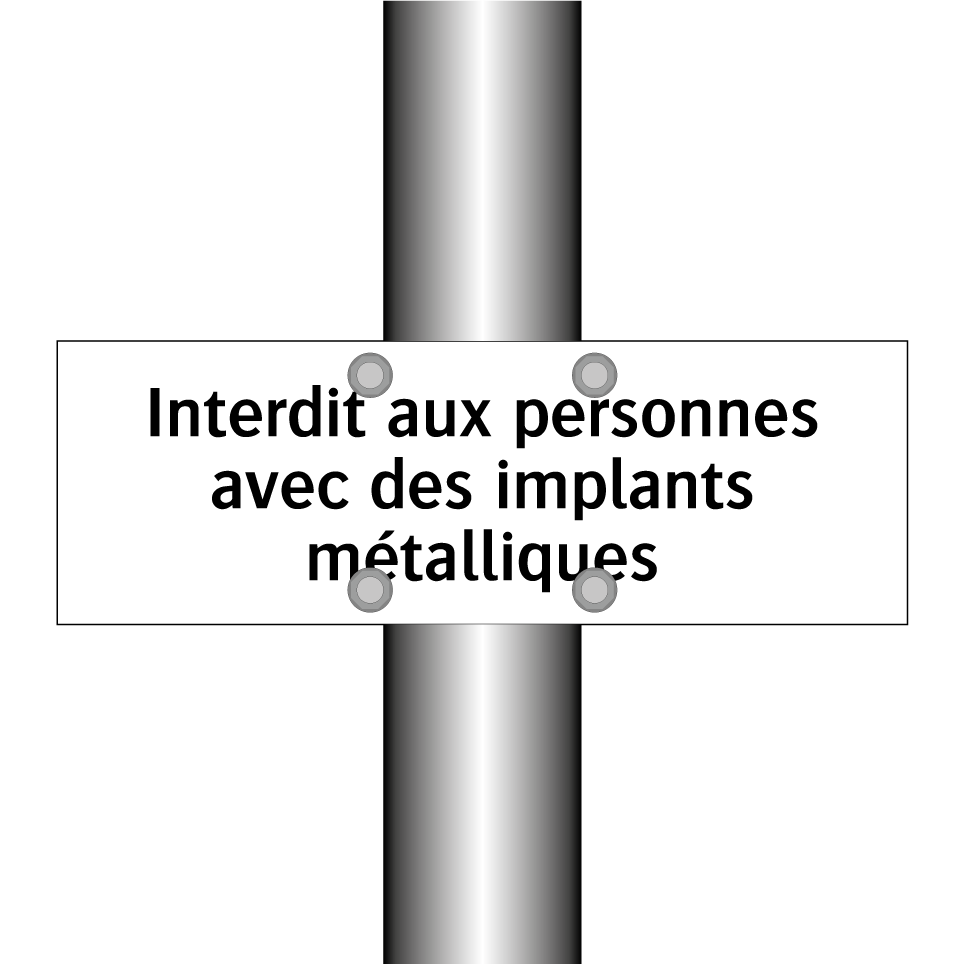 Panneau d'interdiction avec le texte : "Interdit aux personnes avec des implants métalliques"