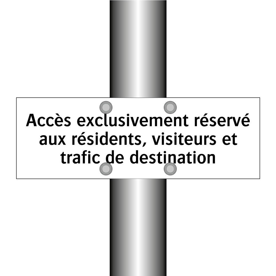 Panneau d'interdiction avec le texte : "Accès exclusivement réservé aux résidents, visiteurs et trafic de destination"
