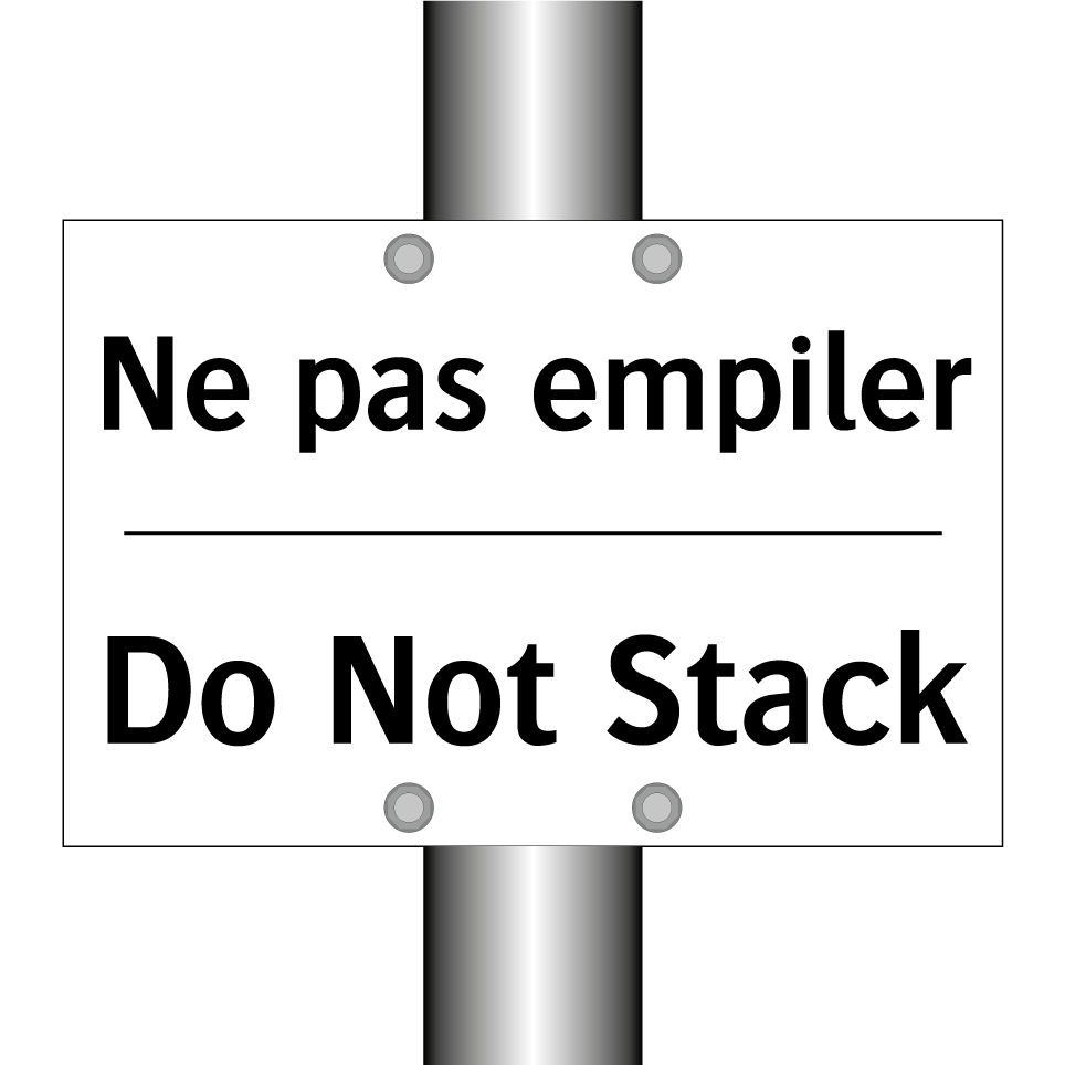 Panneau d'interdiction bilingue avec texte en français : "Ne pas empiler", et en anglais : "Do Not Stack"