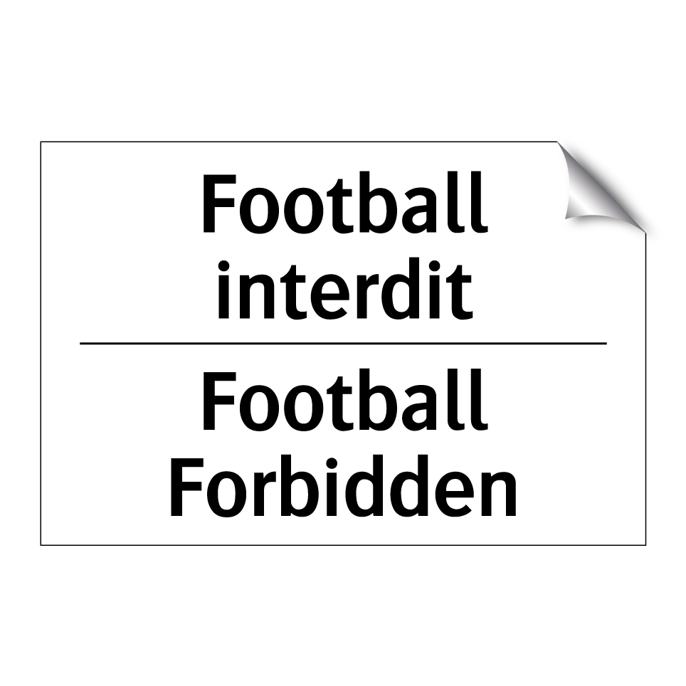Panneau d'interdiction bilingue avec texte en français : "Football interdit", et en anglais : "Football Forbidden"