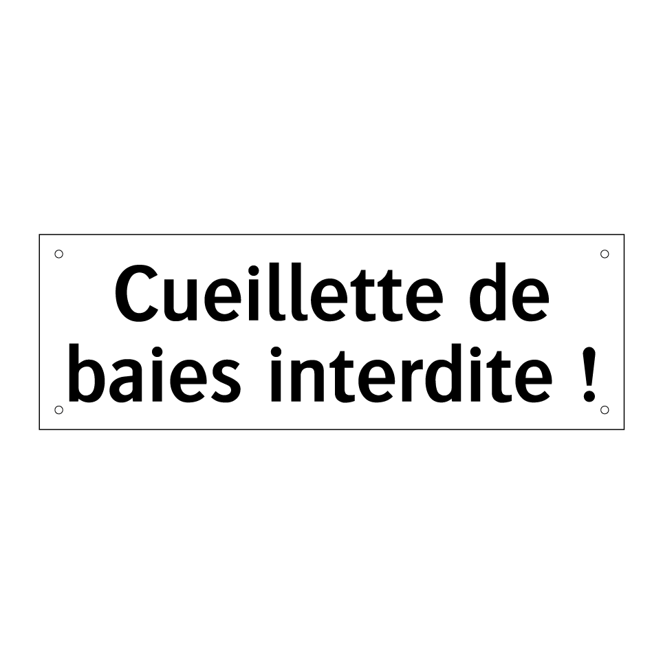 Panneau d'interdiction avec le texte : "Cueillette de baies interdite !"