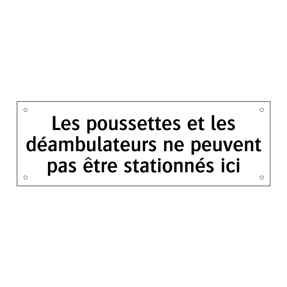 Panneau d'interdiction avec le texte : "Les poussettes et les déambulateurs ne peuvent pas être stationnés ici"