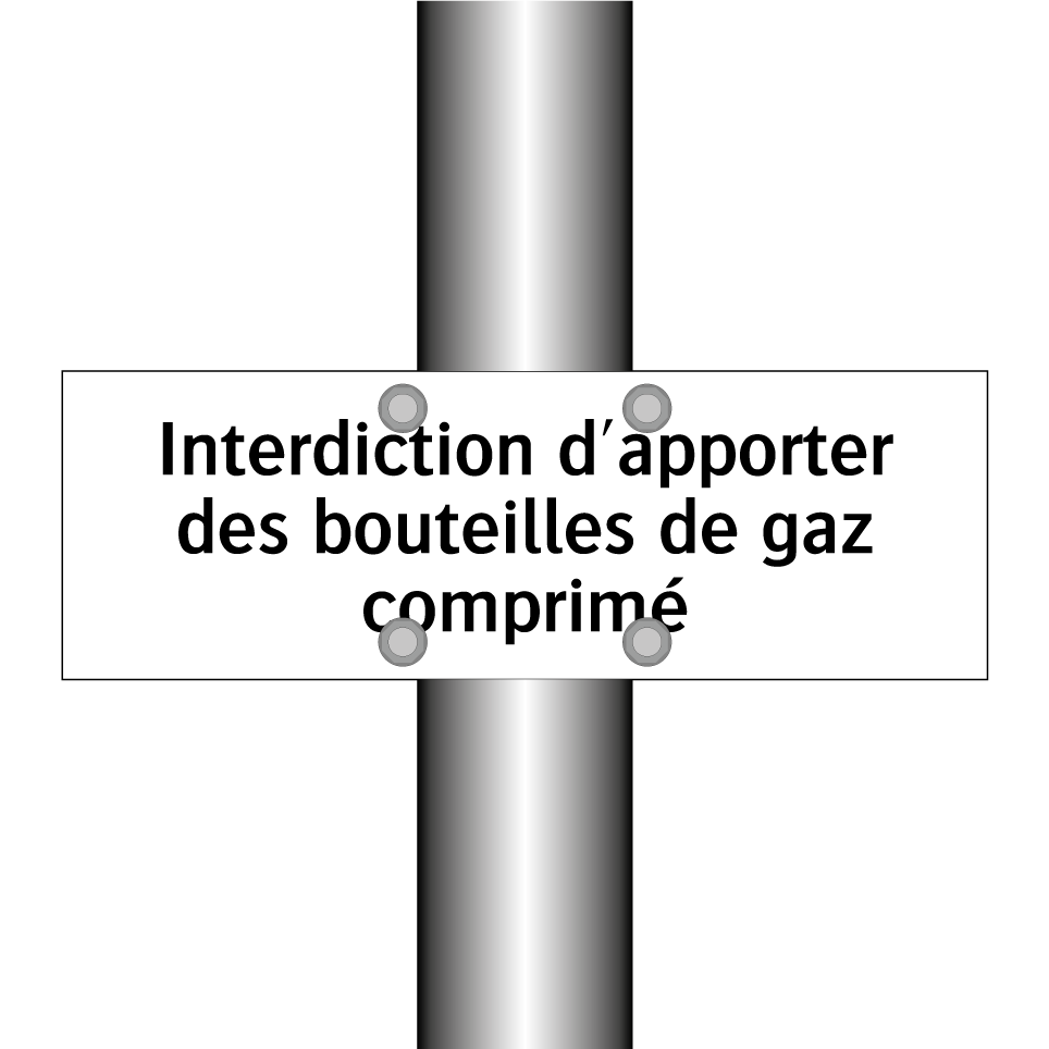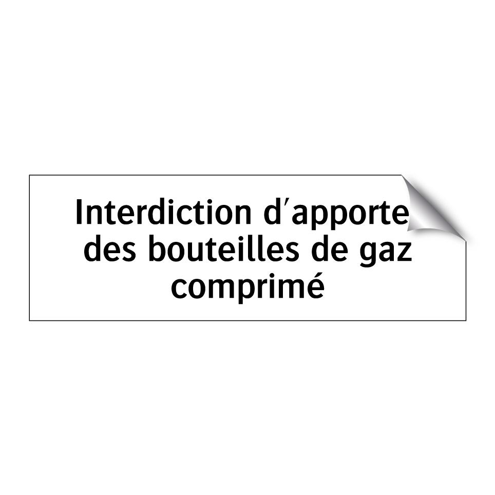 Panneau d'interdiction avec le texte : "Interdiction d'apporter des bouteilles de gaz comprimé"
