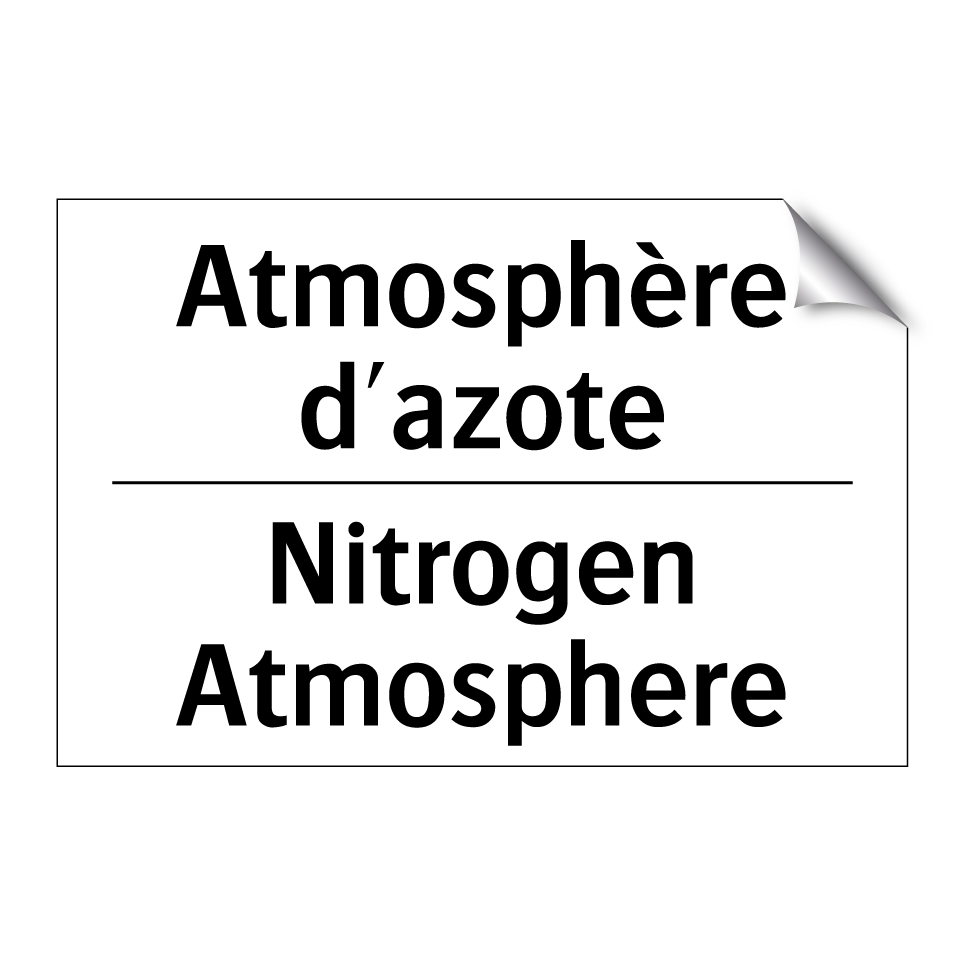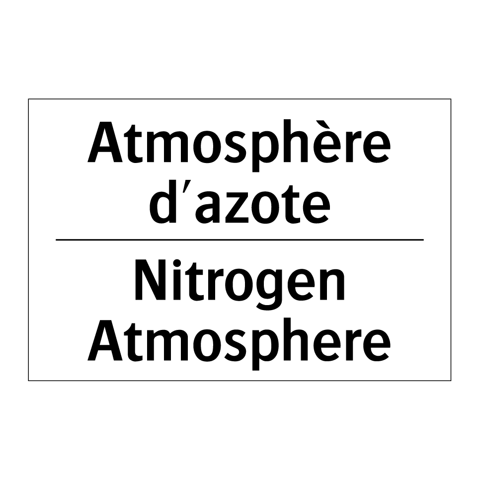 Panneau d'interdiction bilingue avec texte en français : "Atmosphère d'azote", et en anglais : "Nitrogen Atmosphere"