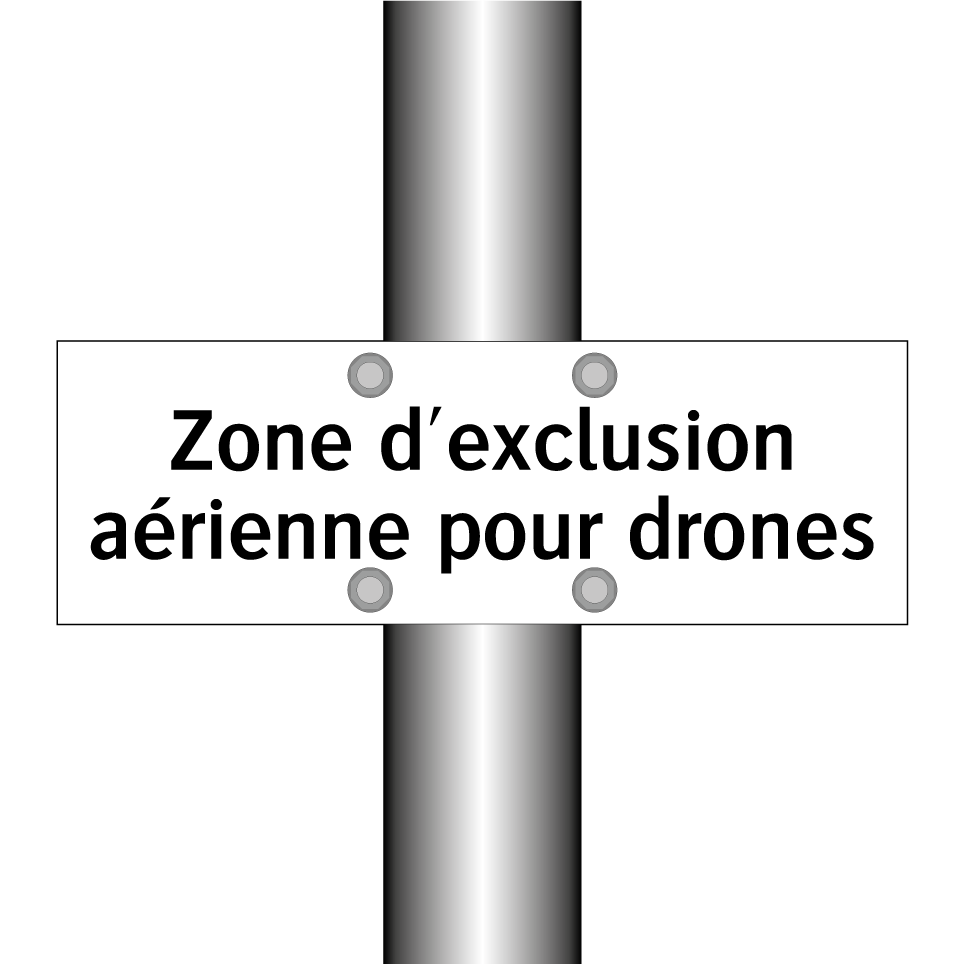 Panneau d'interdiction avec le texte : "Zone d'exclusion aérienne pour drones"