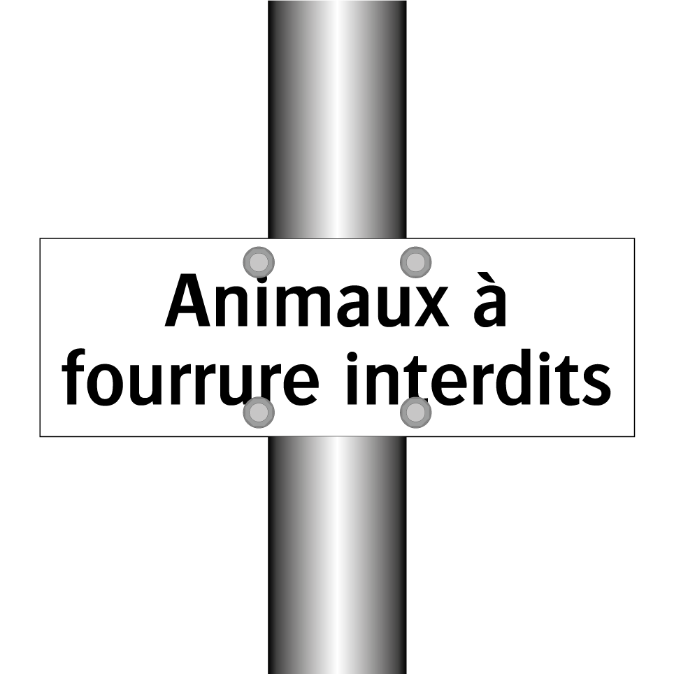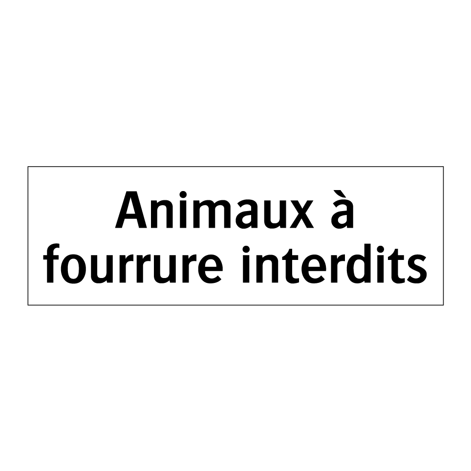 Panneau d'interdiction avec le texte : "Animaux à fourrure interdits"