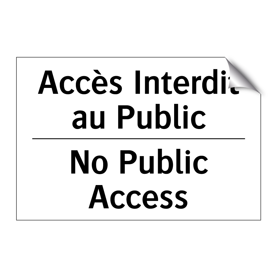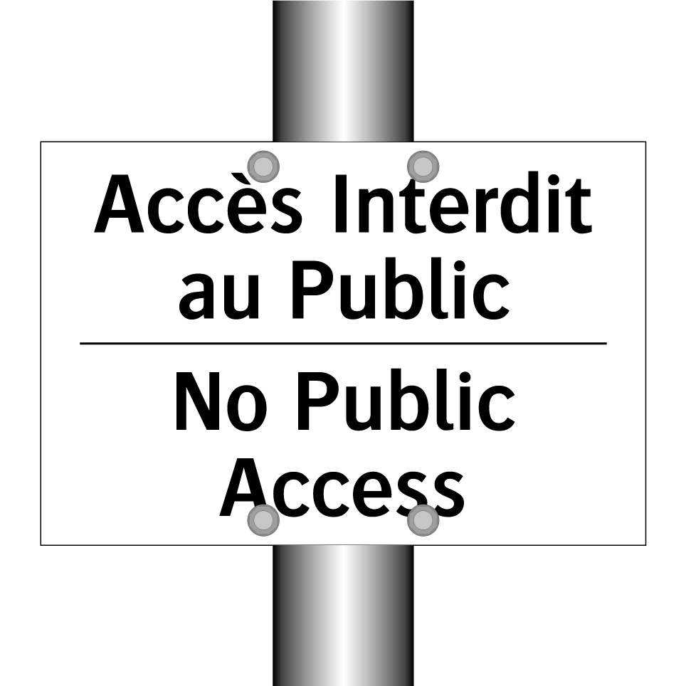 Panneau d'interdiction bilingue avec texte en français : "Accès Interdit au Public", et en anglais : "No Public Access"