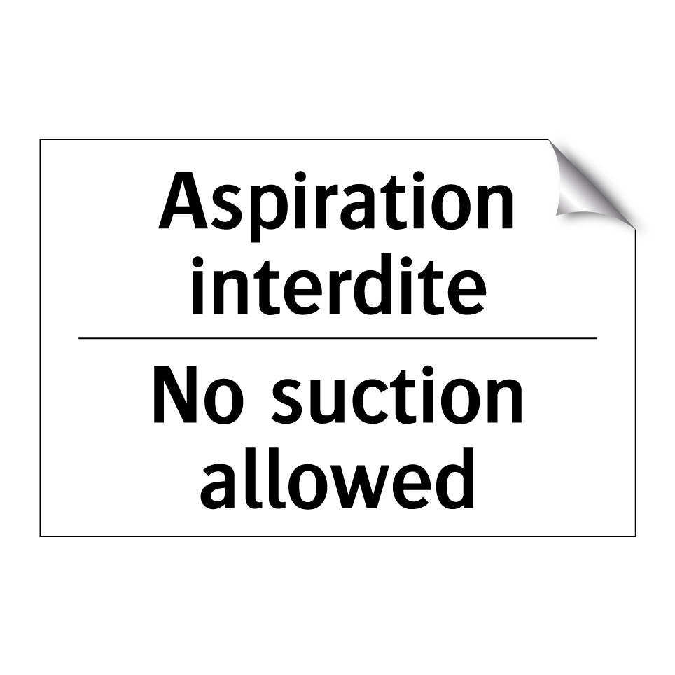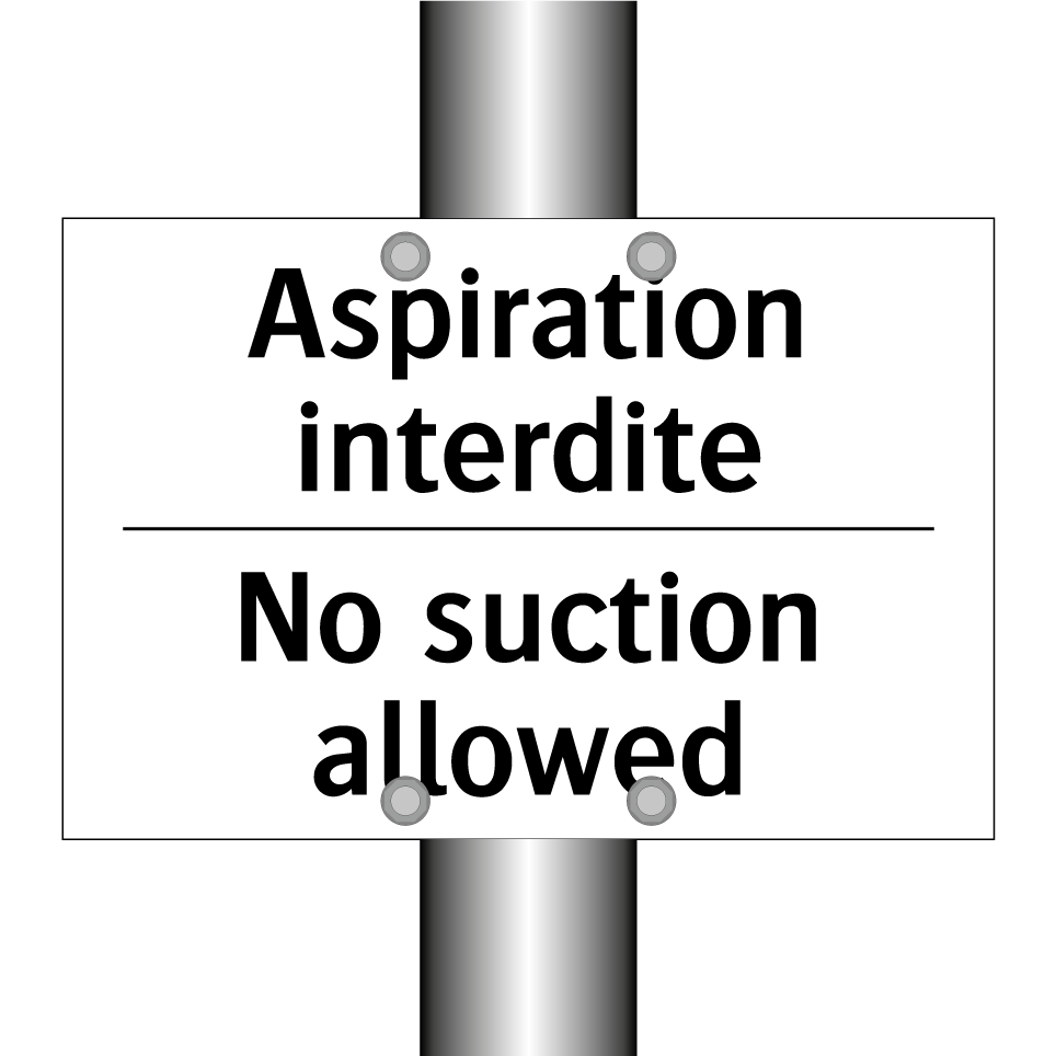 Panneau d'interdiction bilingue avec texte en français : "Aspiration interdite", et en anglais : "No suction allowed"