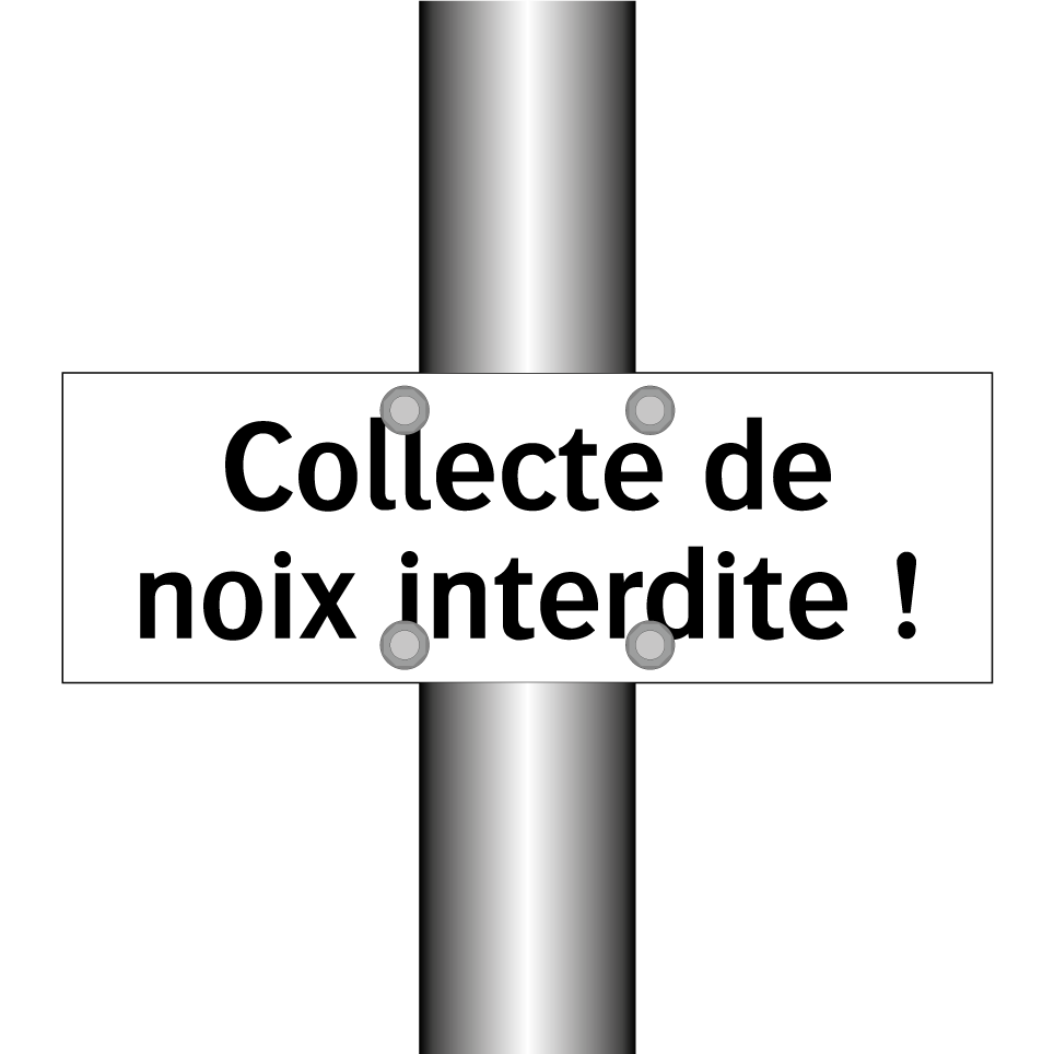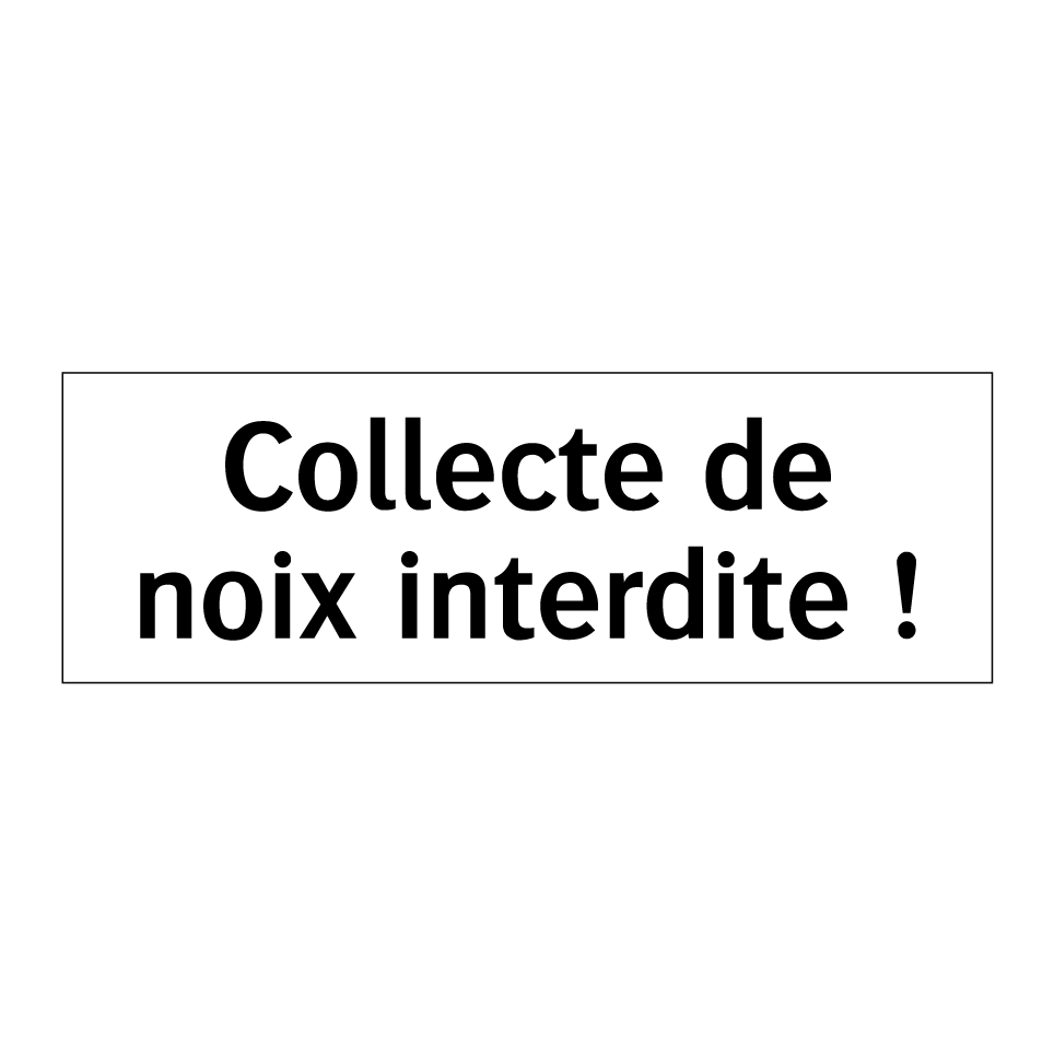 Panneau d'interdiction avec le texte : "Collecte de noix interdite !"