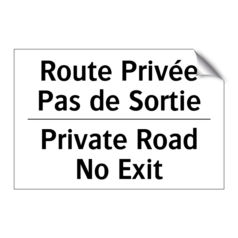 Panneau d'interdiction bilingue avec texte en français : "Route Privée Pas de Sortie", et en anglais : "Private Road No Exit"