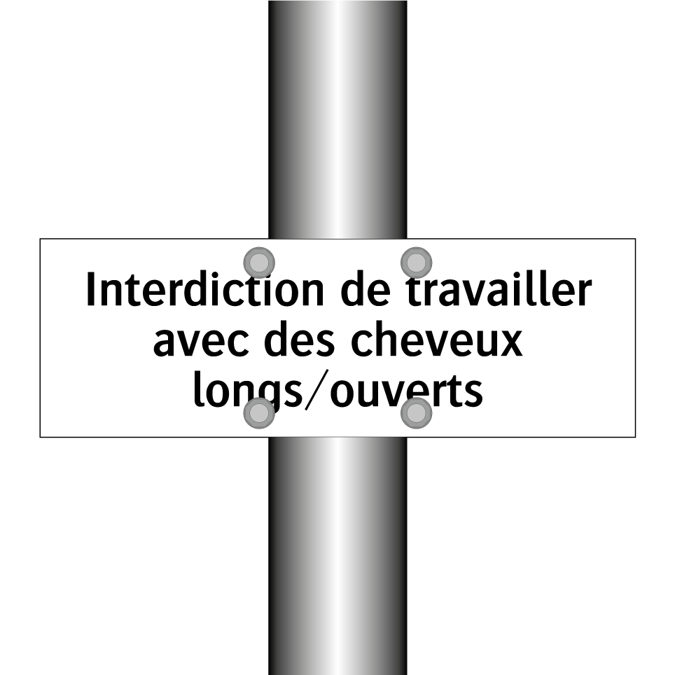 Panneau d'interdiction avec le texte : "Interdiction de travailler avec des cheveux longs/ouverts"