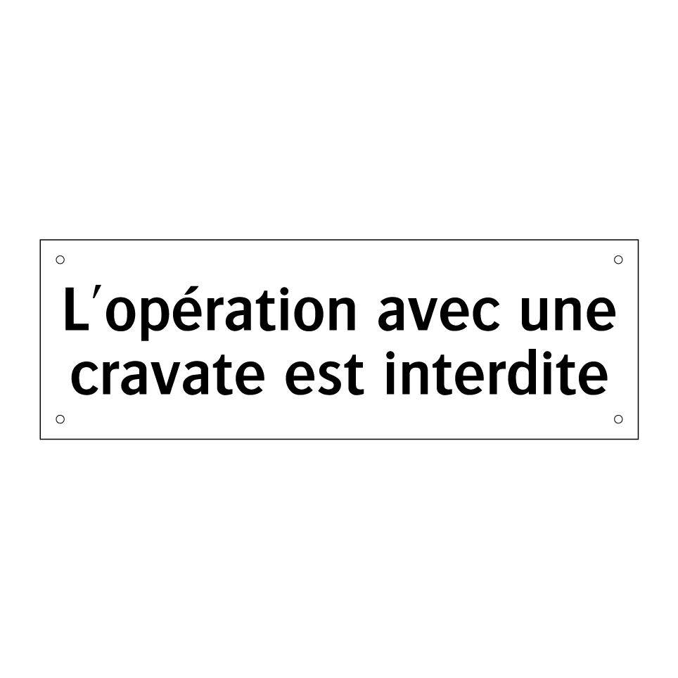 Panneau d'interdiction avec le texte : "L'opération avec une cravate est interdite"