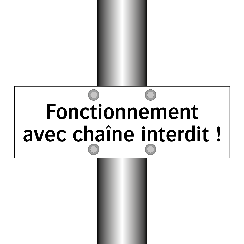 Panneau d'interdiction avec le texte : "Fonctionnement avec chaîne interdit !"