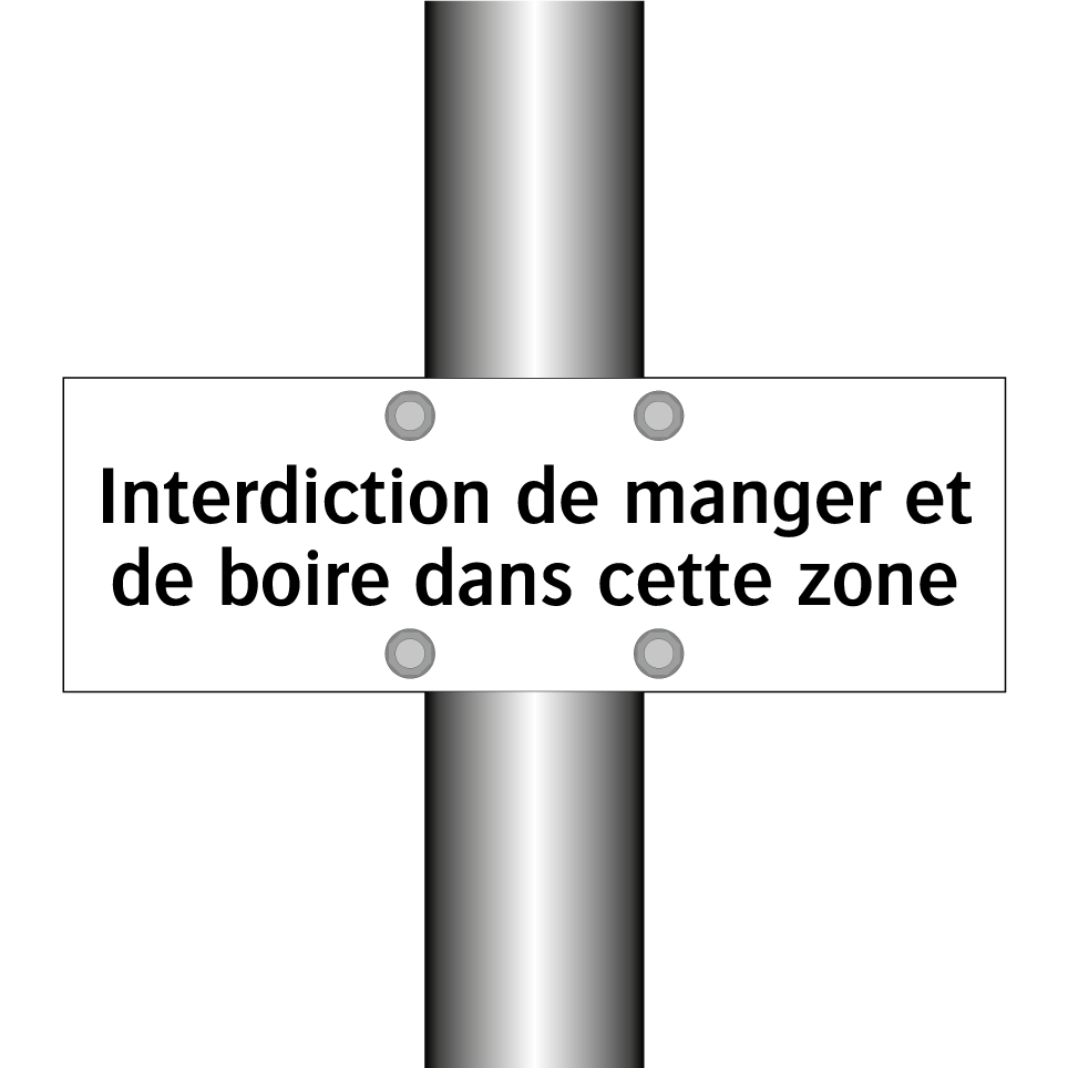 Panneau d'interdiction avec le texte : "Interdiction de manger et de boire dans cette zone"