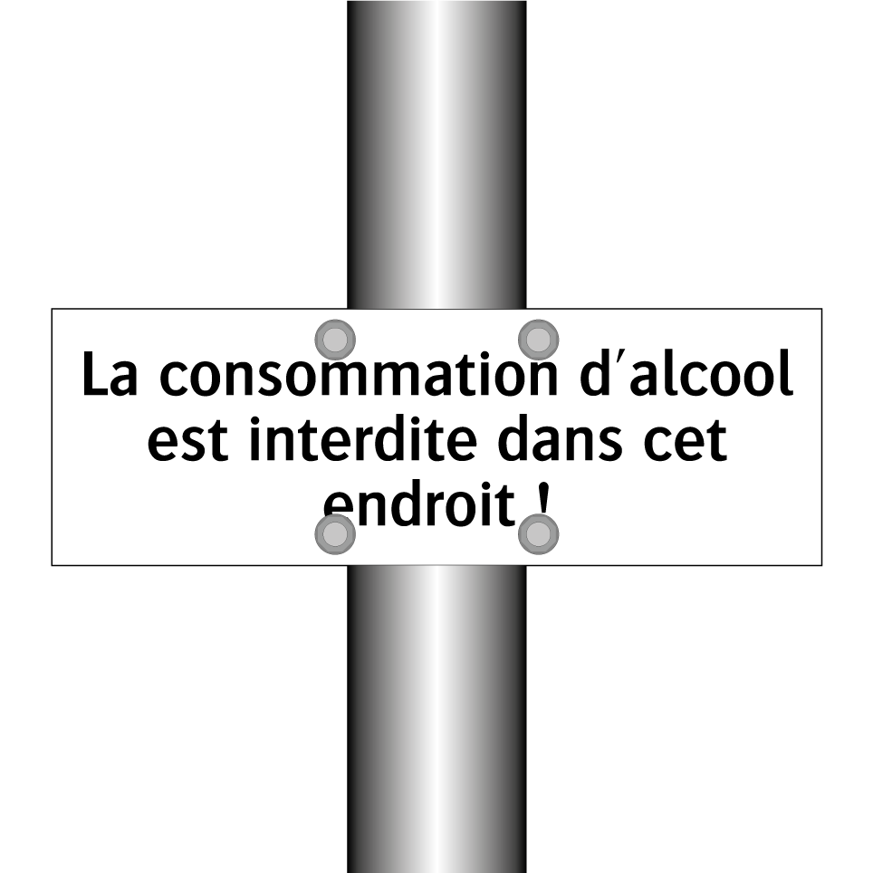 Panneau d'interdiction avec le texte : "La consommation d'alcool est interdite dans cet endroit !"