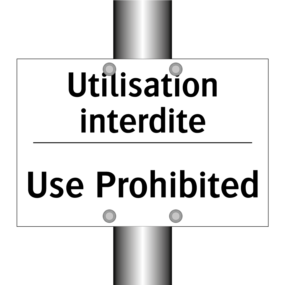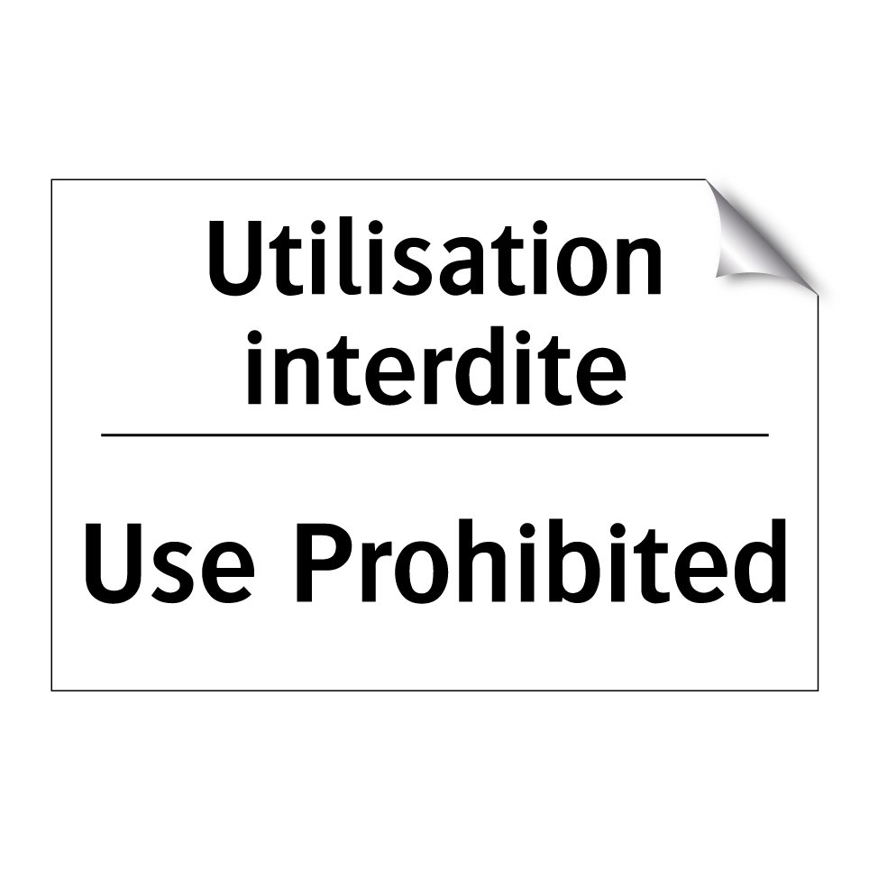 Panneau d'interdiction bilingue avec texte en français : "Utilisation interdite", et en anglais : "Use Prohibited"