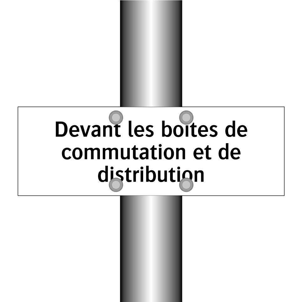 Panneau d'interdiction avec le texte : "Devant les boîtes de commutation et de distribution"