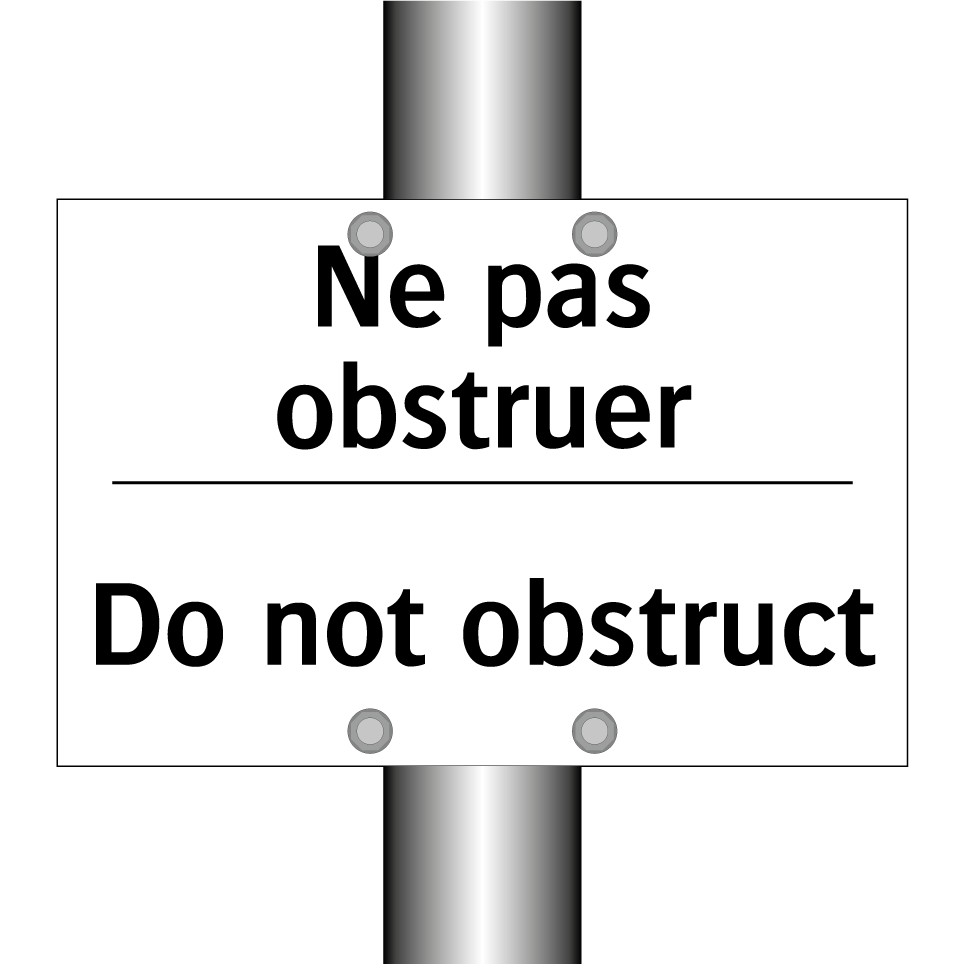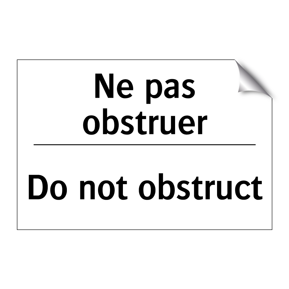 Panneau d'interdiction bilingue avec texte en français : "Ne pas obstruer", et en anglais : "Do not obstruct"