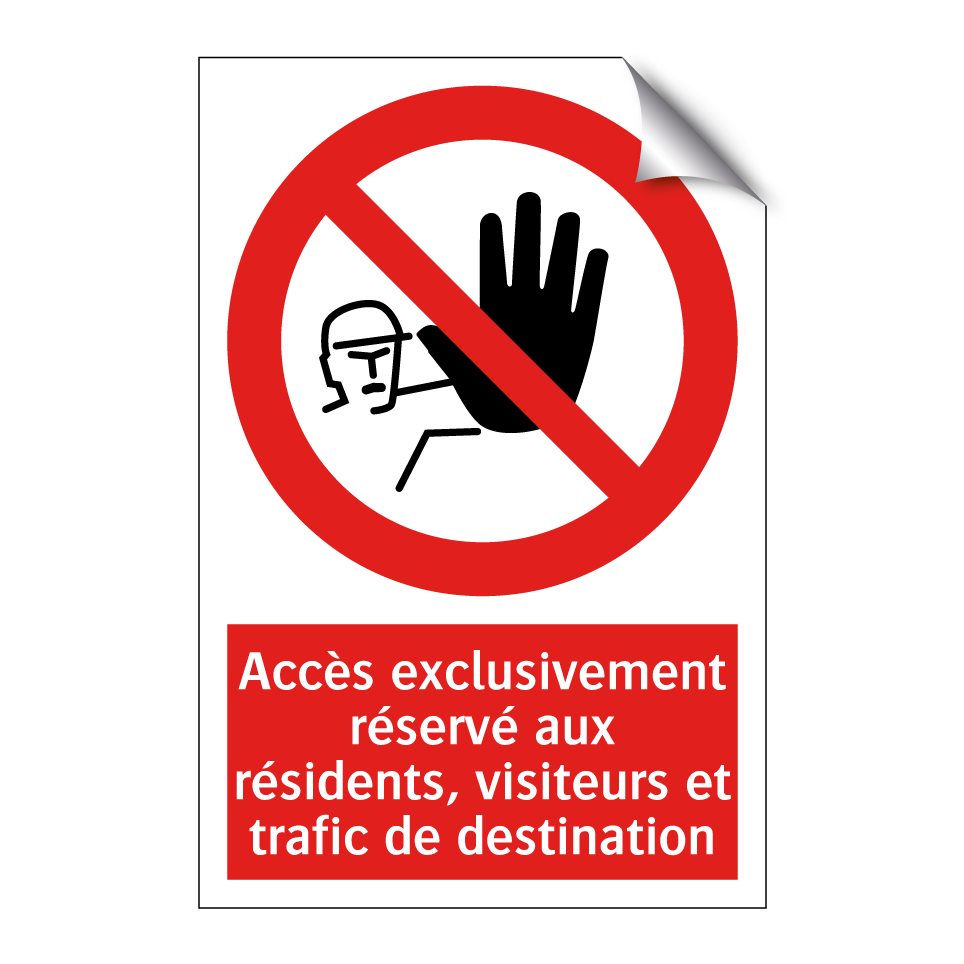 Panneau d'interdiction avec le texte : "Accès exclusivement réservé aux résidents, visiteurs et trafic de destination" et une symbolique claire.
