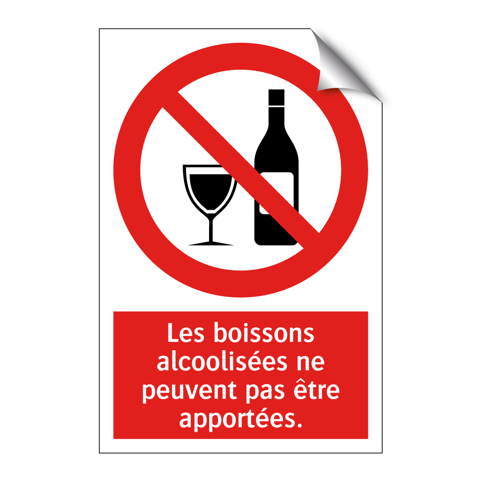 Panneau d'interdiction avec le texte : "Les boissons alcoolisées ne peuvent pas être apportées." et une symbolique claire.