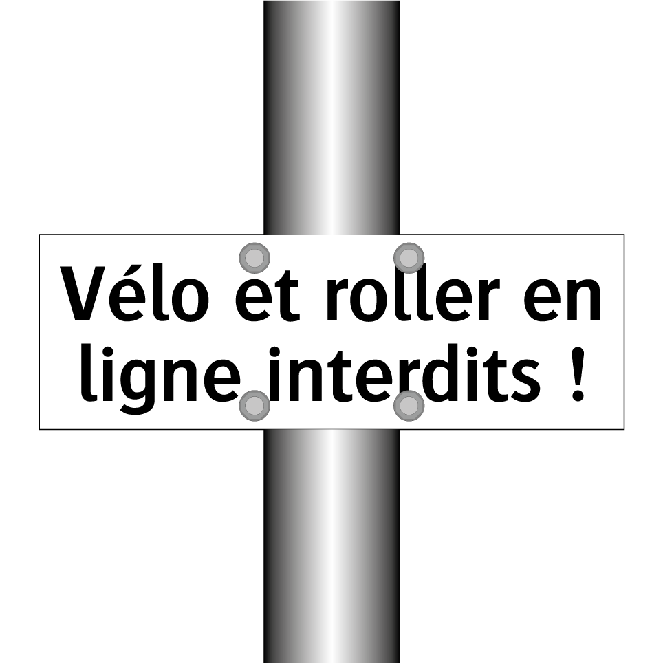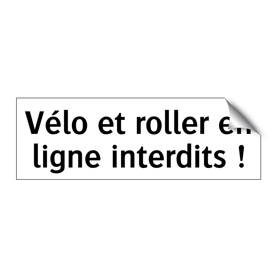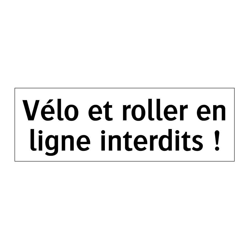 Panneau d'interdiction avec le texte : "Vélo et roller en ligne interdits !"