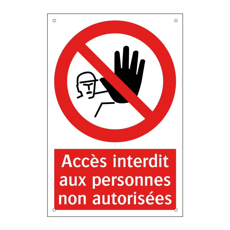 Panneau d'interdiction avec le texte : "Accès interdit aux personnes non autorisées" et une symbolique claire.