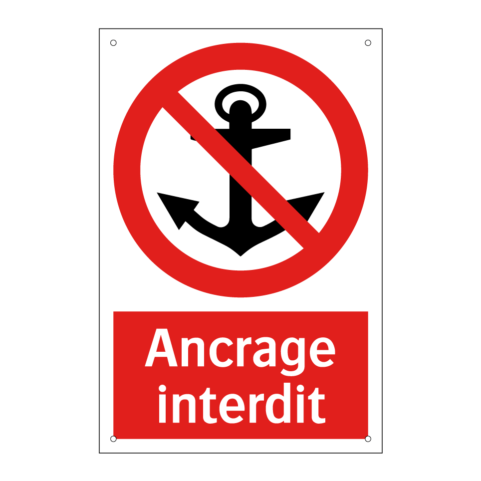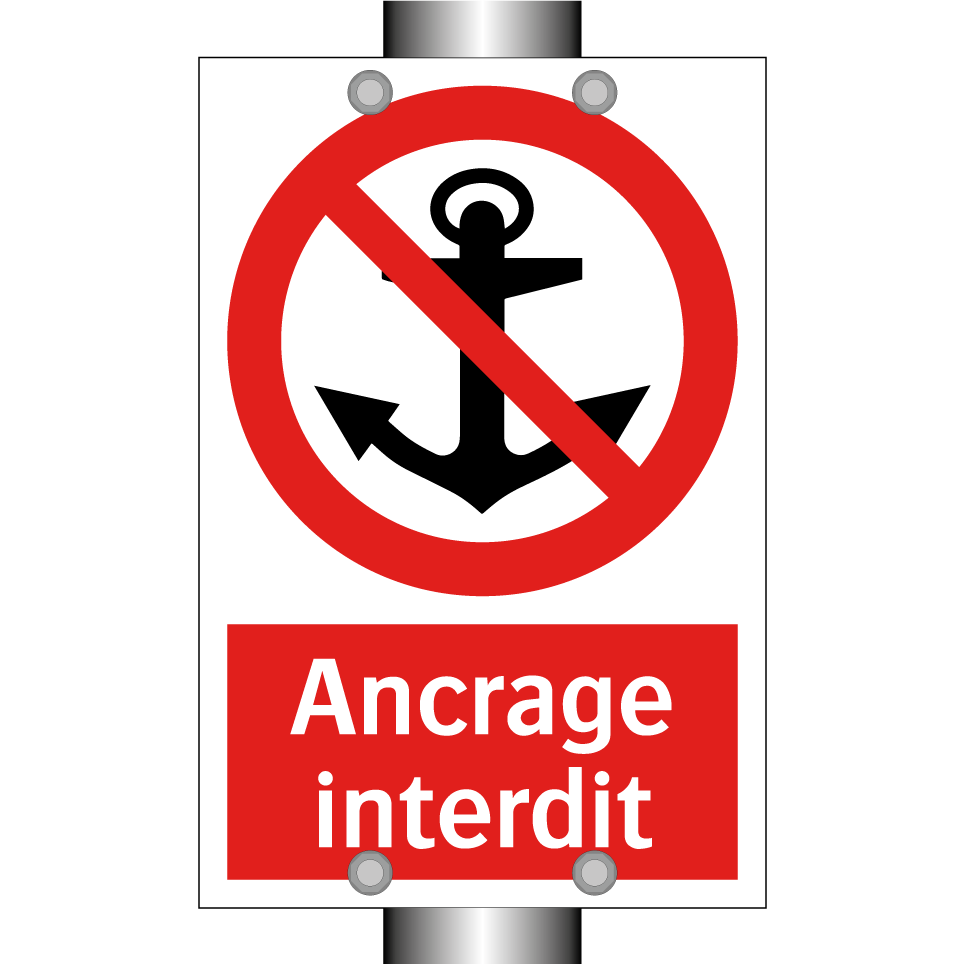 Panneau d'interdiction avec le texte : "Ancrage interdit" et une symbolique claire.
