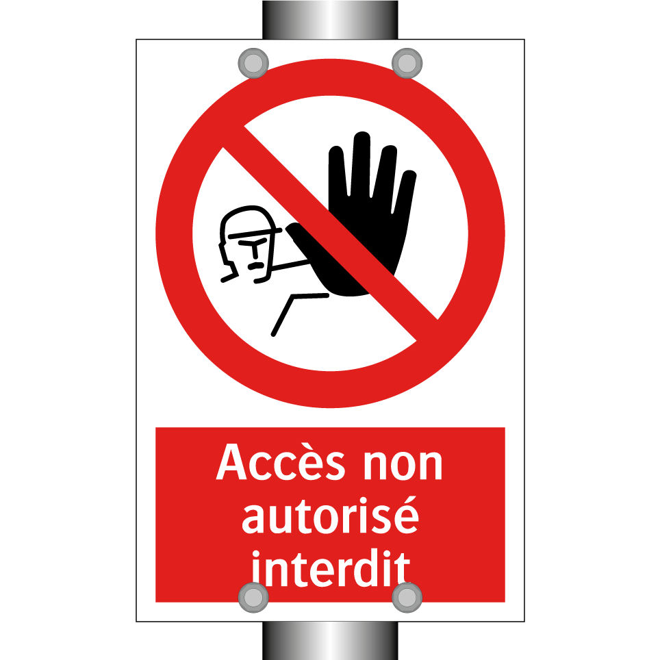 Panneau d'interdiction avec le texte : "Accès non autorisé interdit" et une symbolique claire.