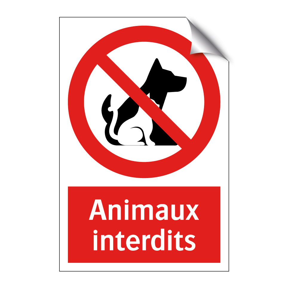 Panneau d'interdiction avec le texte : "Animaux interdits" et une symbolique claire.