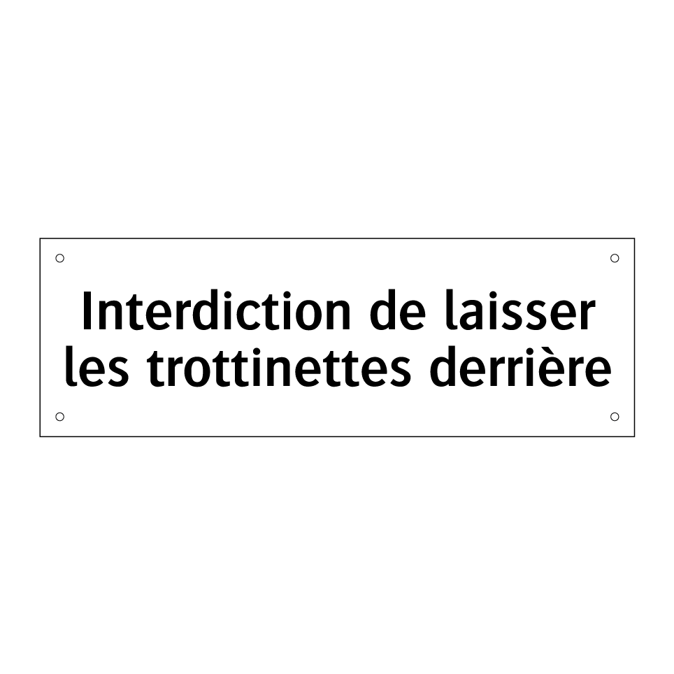 Panneau d'interdiction avec le texte : "Interdiction de laisser les trottinettes derrière"