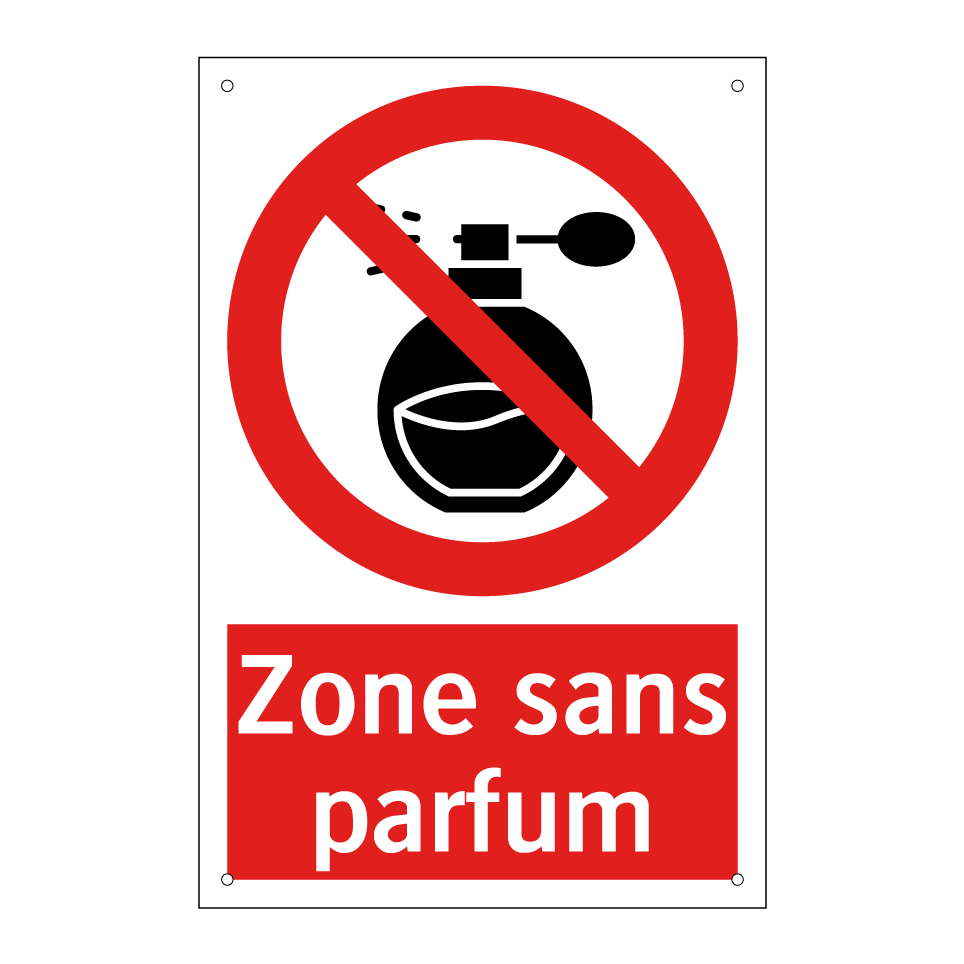 Panneau d'interdiction avec le texte : "Zone sans parfum" et une symbolique claire.
