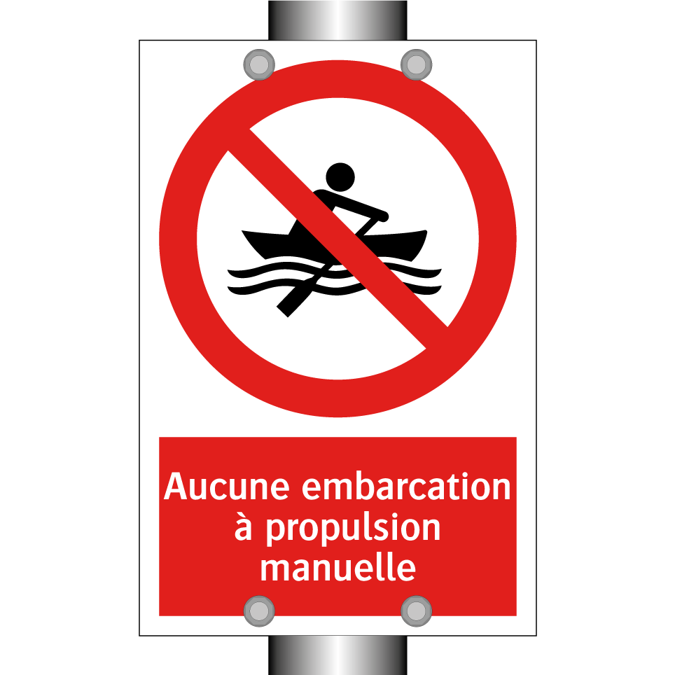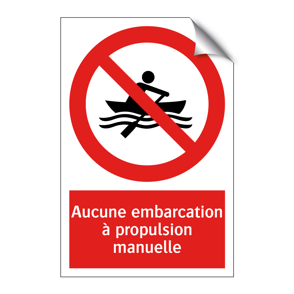 Panneau d'interdiction avec le texte : "Aucune embarcation à propulsion manuelle" et une symbolique claire.