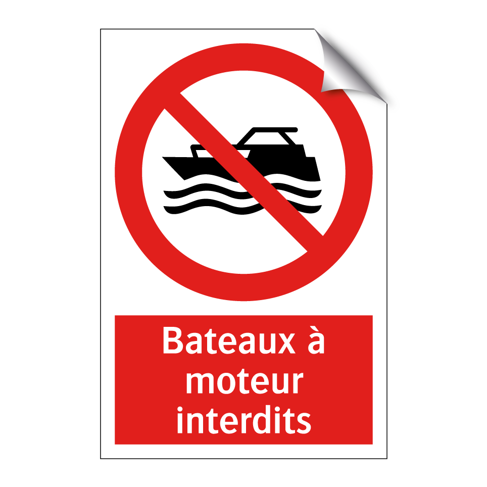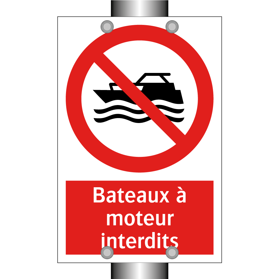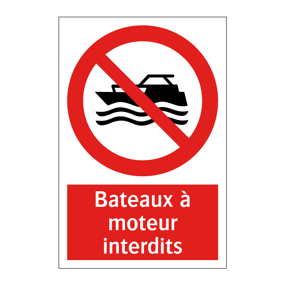 Panneau d'interdiction avec le texte : "Bateaux à moteur interdits" et une symbolique claire.