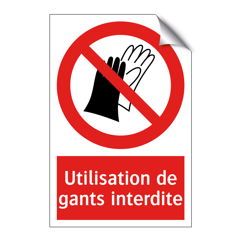 Panneau d'interdiction avec le texte : "Utilisation de gants interdite" et une symbolique claire.