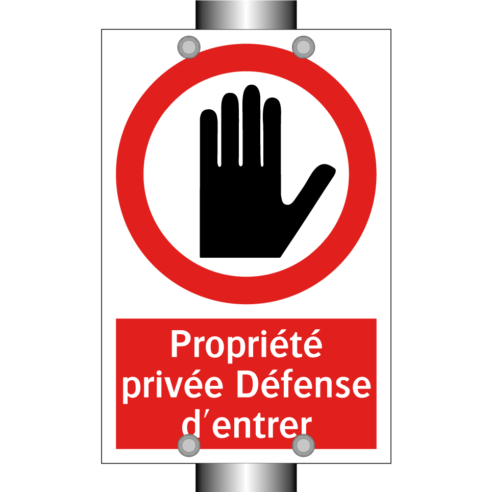 Panneau d'interdiction avec le texte : "Propriété privée Défense d'entrer" et une symbolique claire.