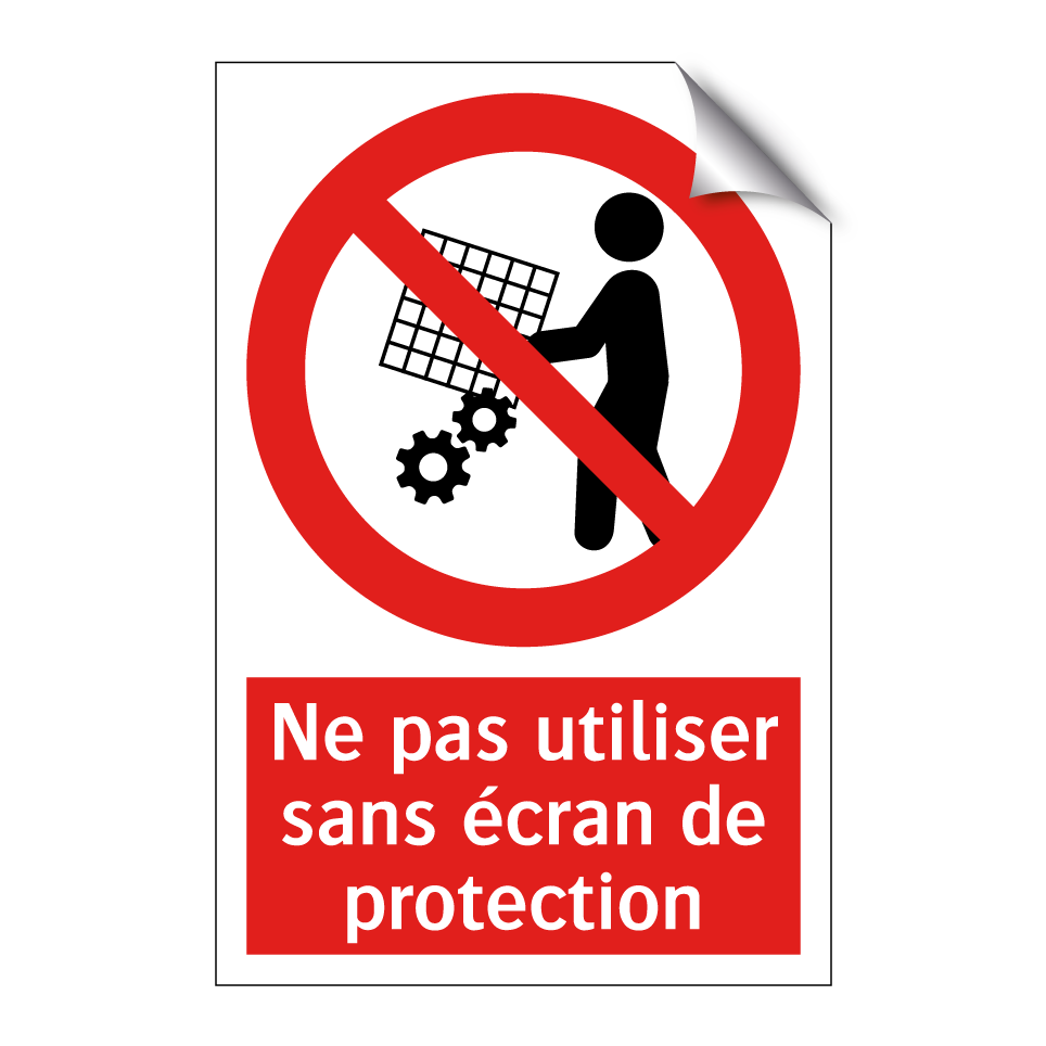 Panneau d'interdiction avec le texte : "Ne pas utiliser sans écran de protection" et une symbolique claire.