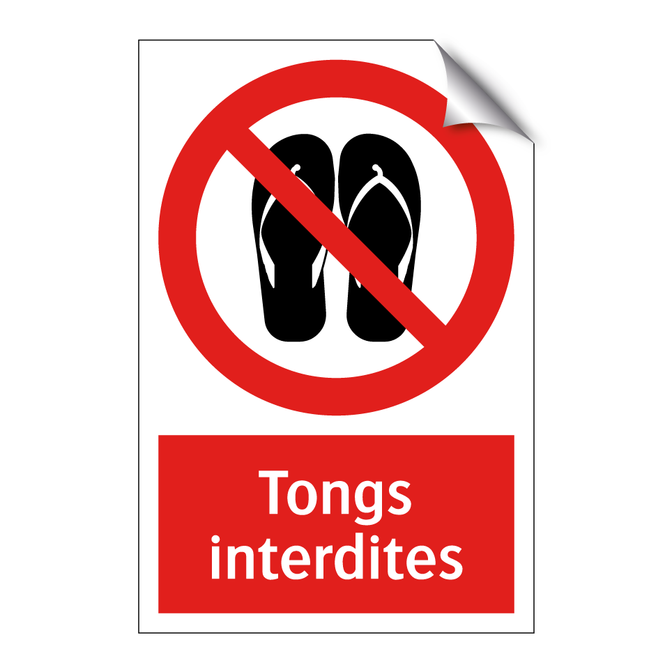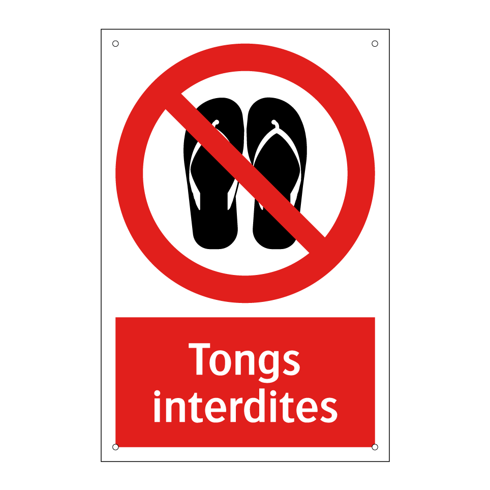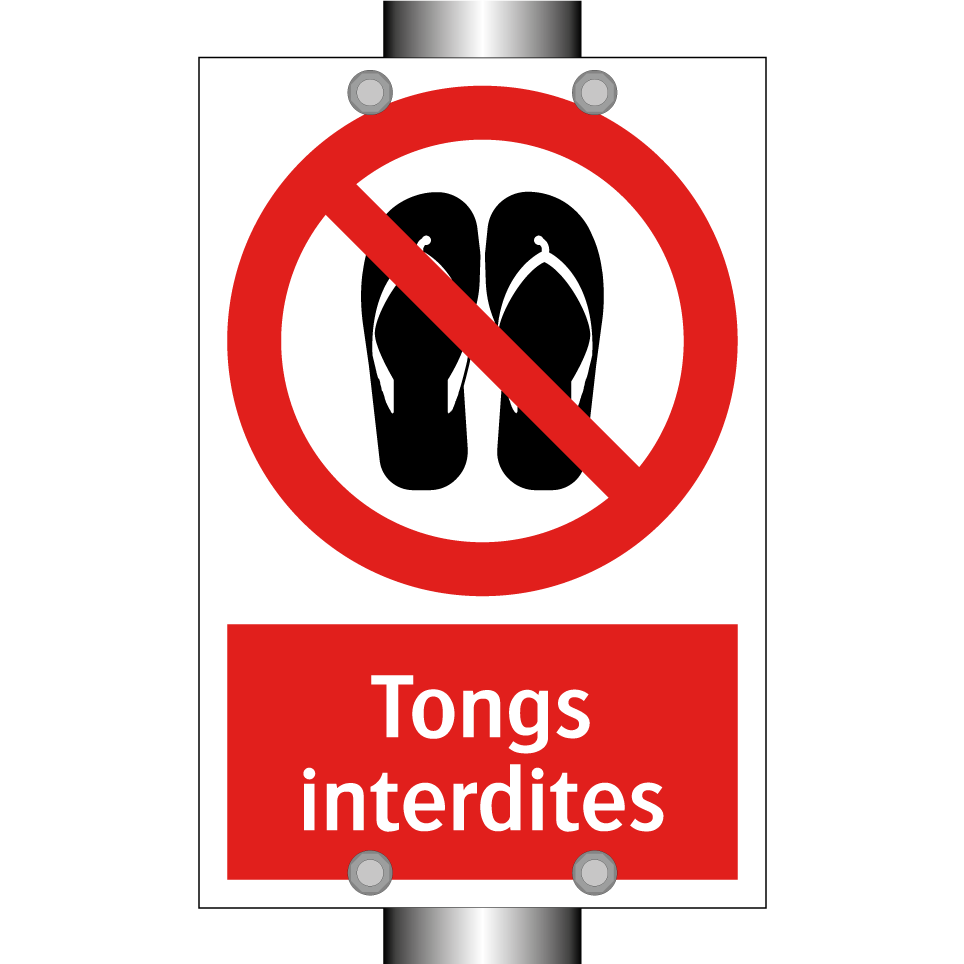 Panneau d'interdiction avec le texte : "Tongs interdites" et une symbolique claire.