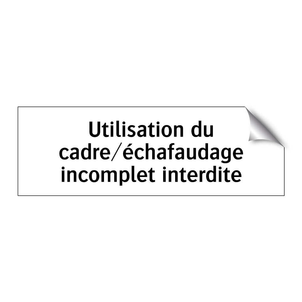 Panneau d'interdiction avec le texte : "Utilisation du cadre/échafaudage incomplet interdite"