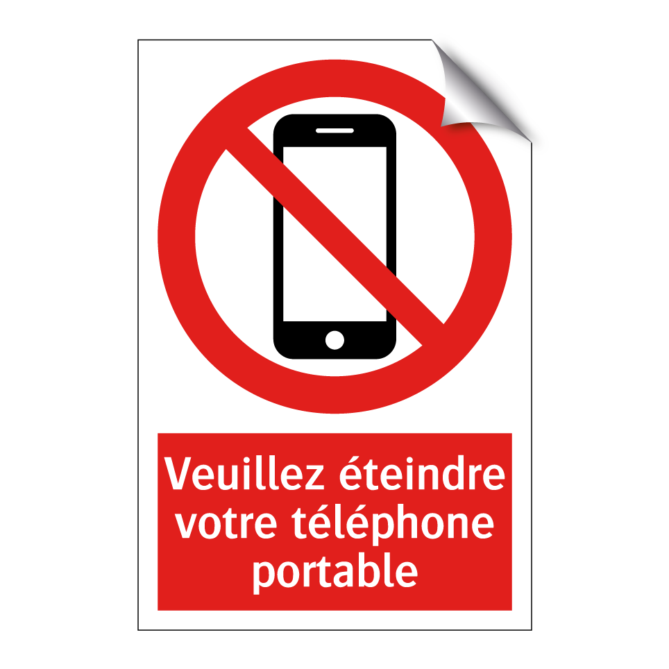 Panneau d'interdiction avec le texte : "Veuillez éteindre votre téléphone portable" et une symbolique claire.