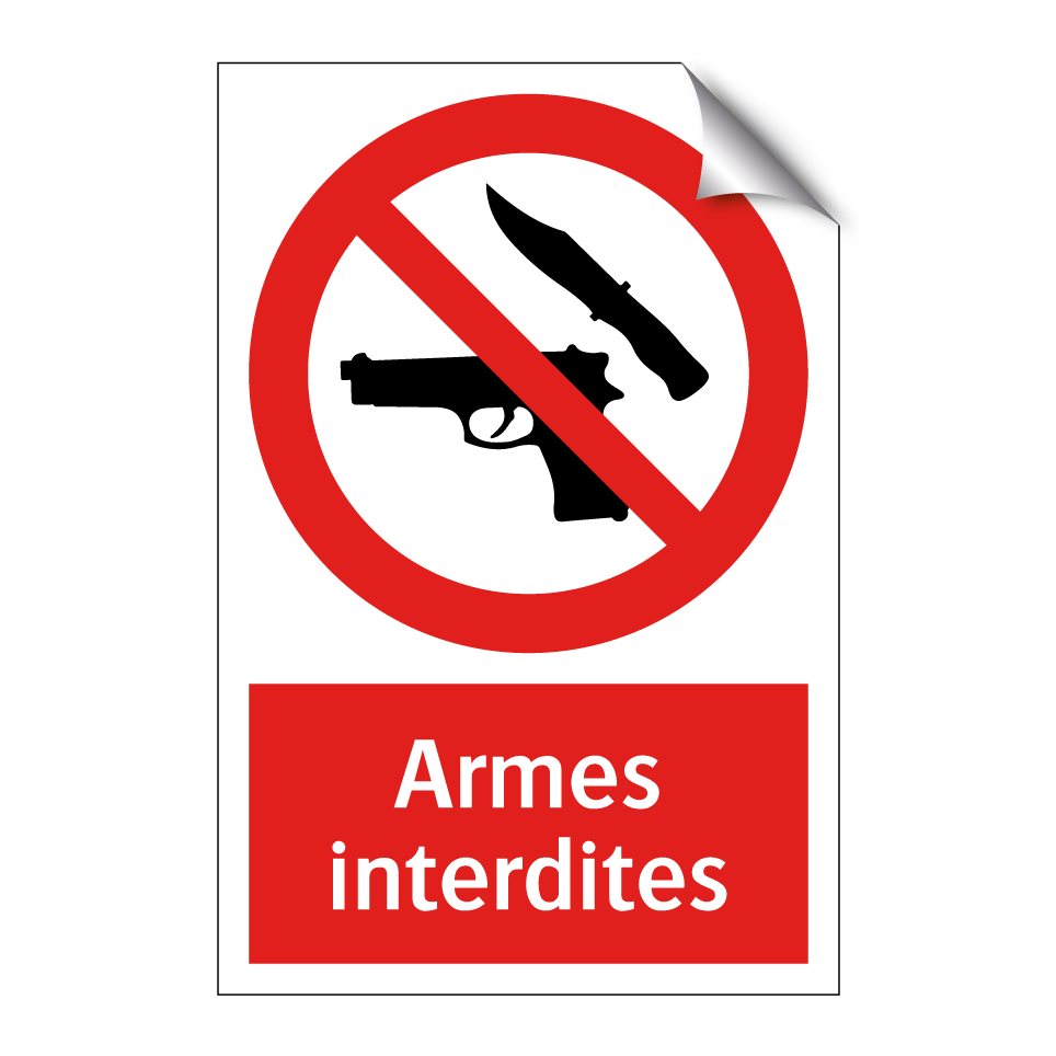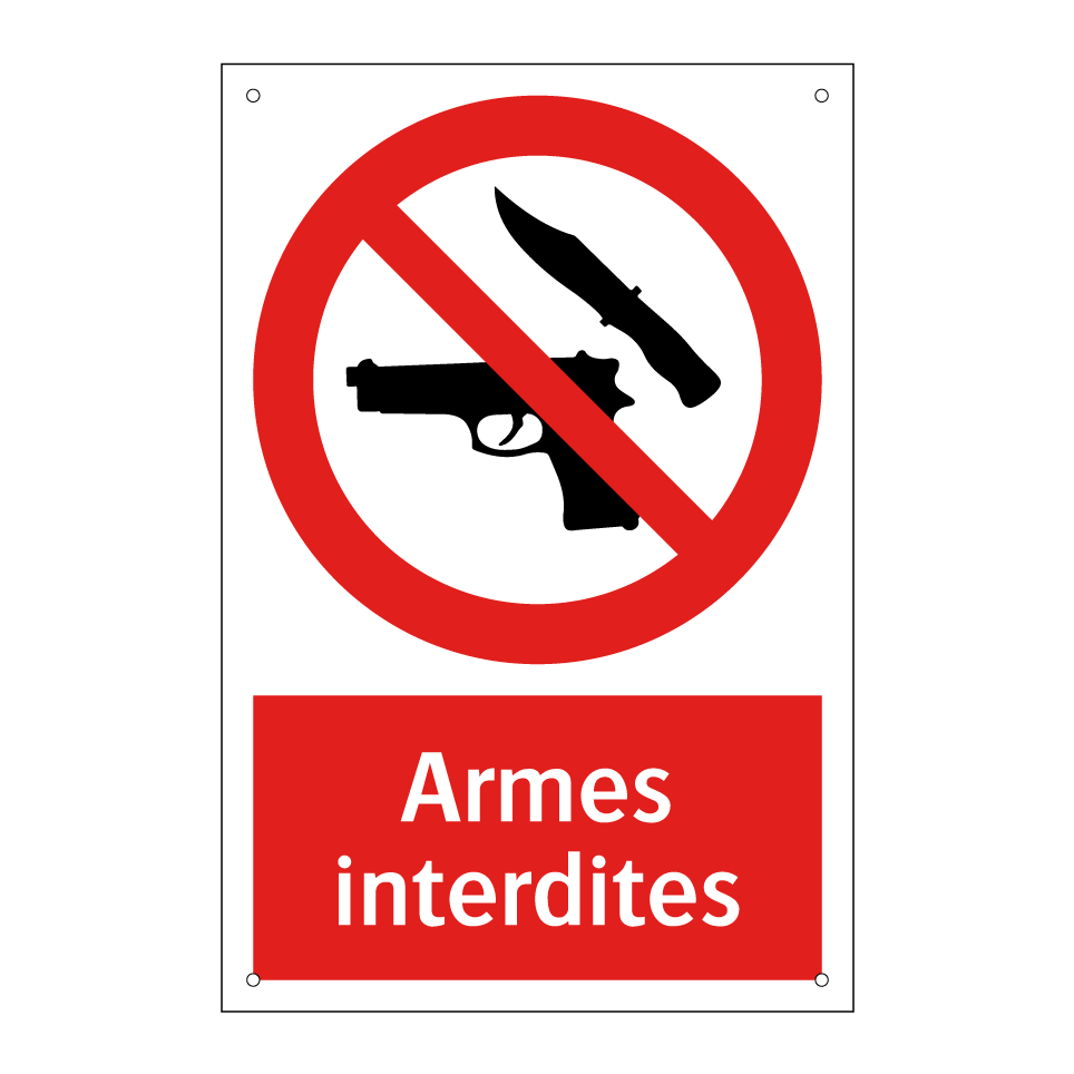 Panneau d'interdiction avec le texte : "Armes interdites" et une symbolique claire.