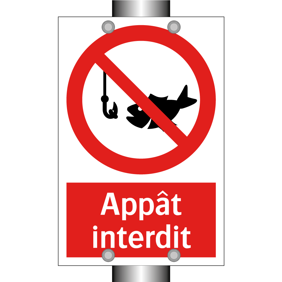 Panneau d'interdiction avec le texte : "Appât interdit" et une symbolique claire.