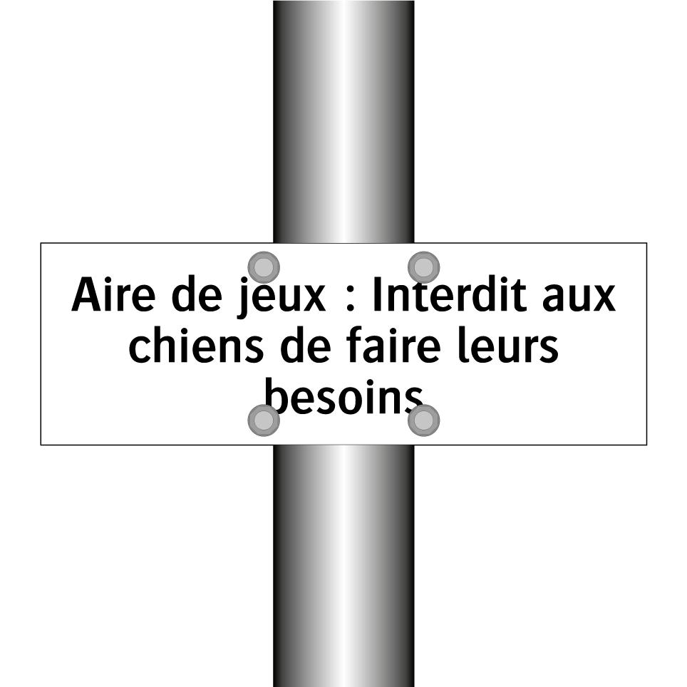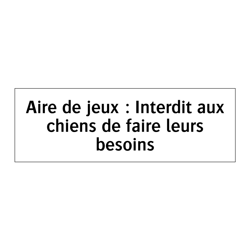 Panneau d'interdiction avec le texte : "Aire de jeux : Interdit aux chiens de faire leurs besoins"