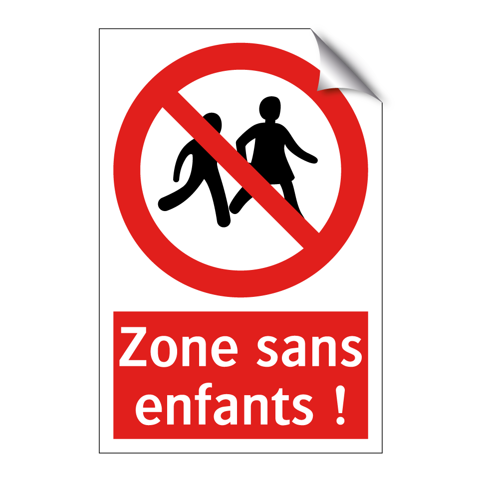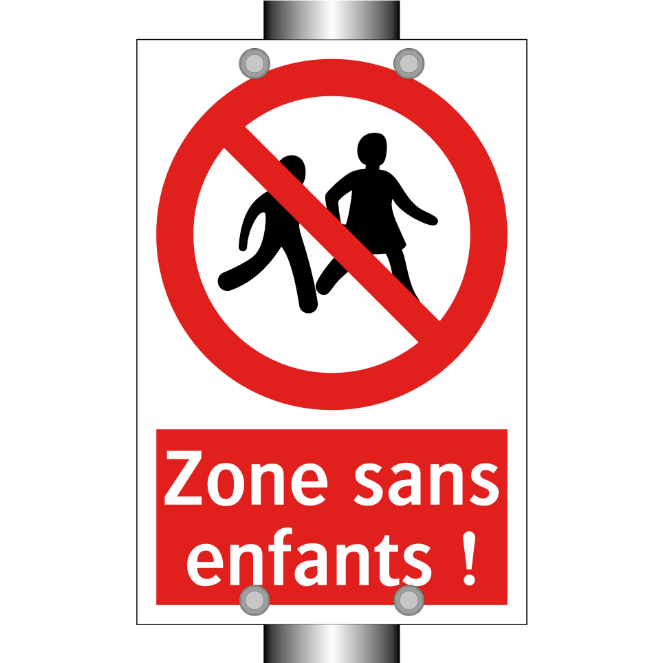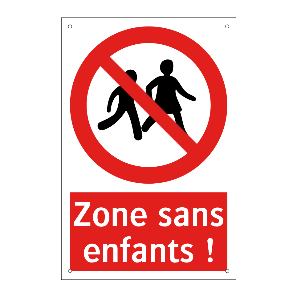 Panneau d'interdiction avec le texte : "Zone sans enfants !" et une symbolique claire.